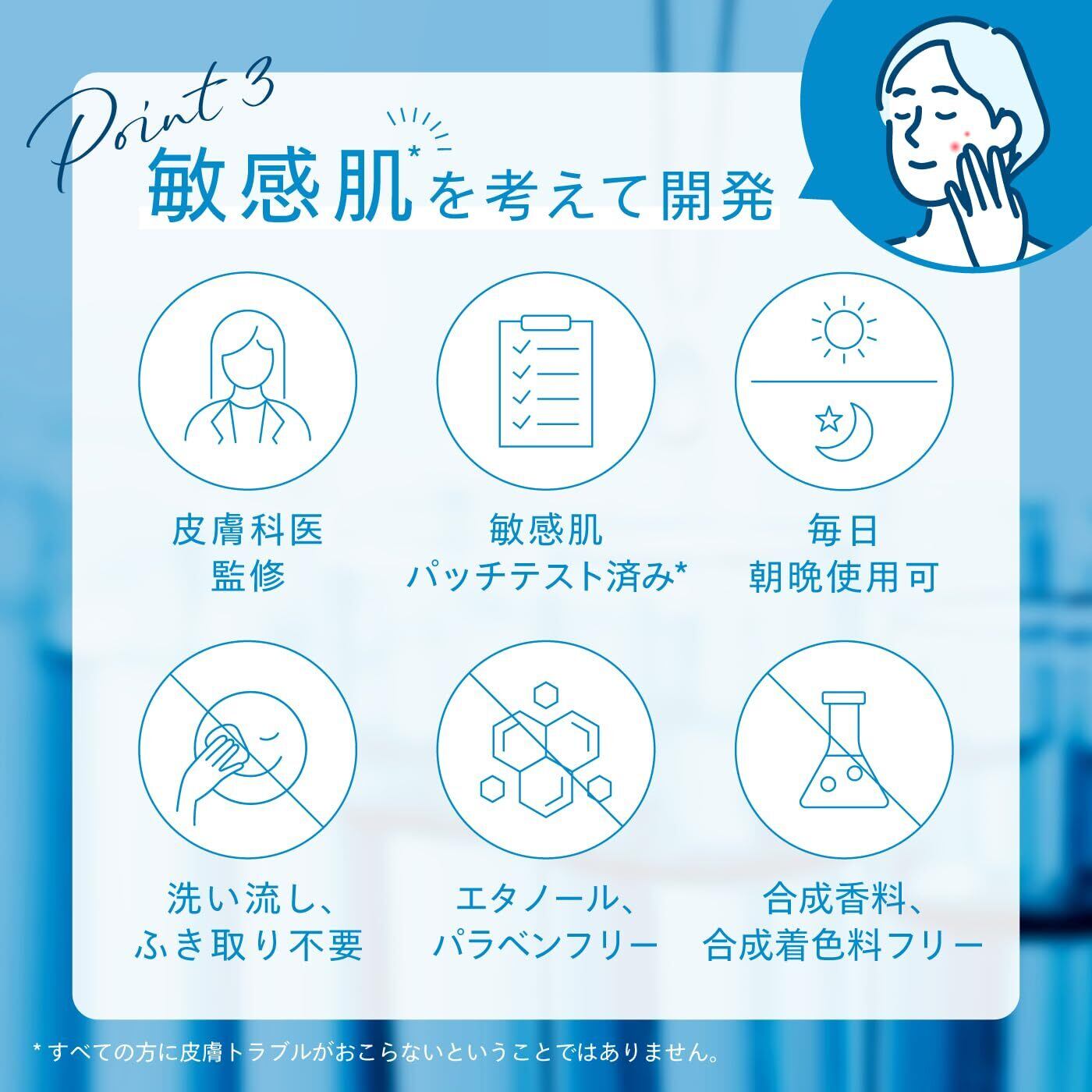 【毎日使えるやさしい角質ケア】敏感肌でも毎日使えるように、マンデル酸を含む3種のやさしいピーリング成分を配合しました。敏感肌のためにこだわり抜いた優しい設計。