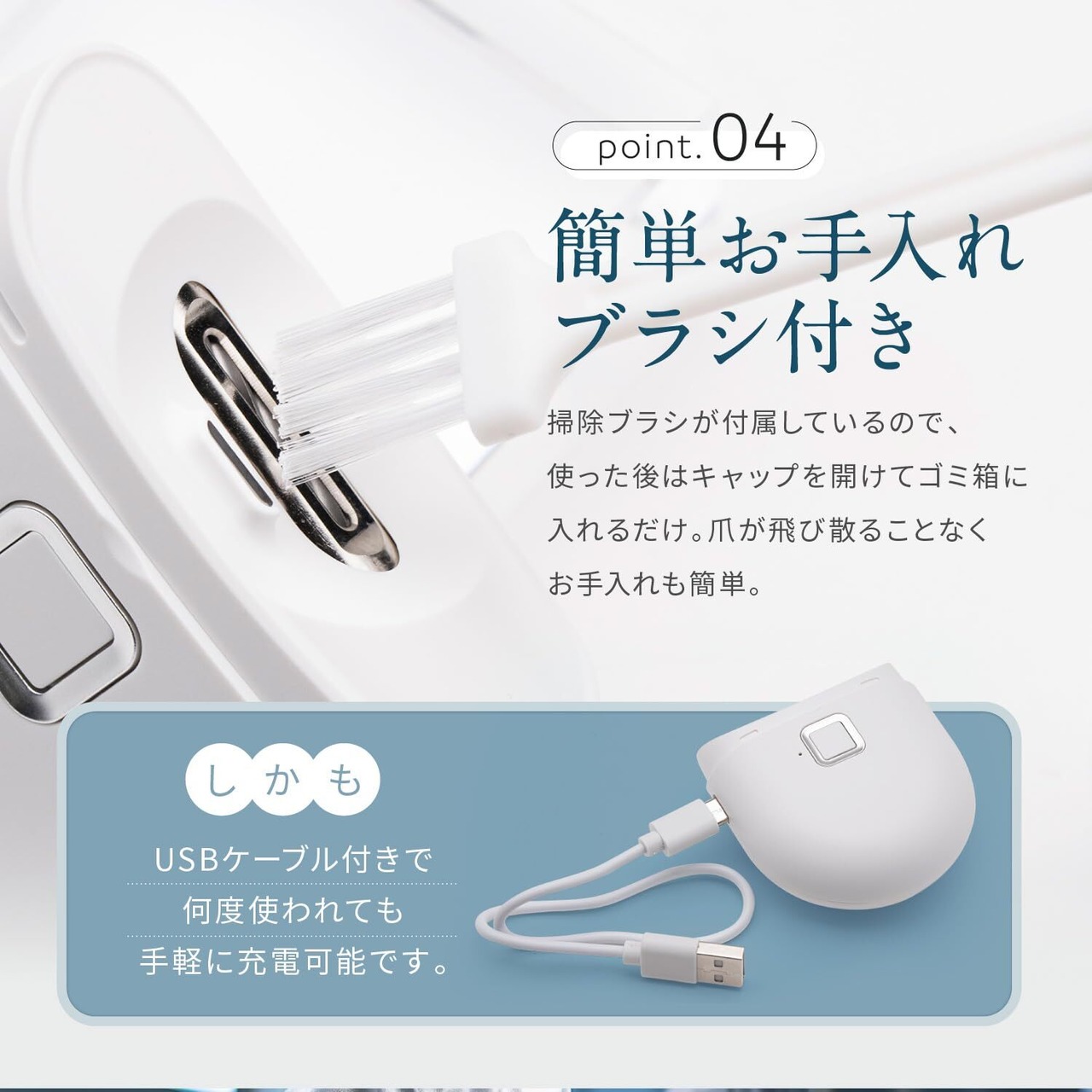 【Poco'ce掲載】 電動爪切り 電動爪削り 自動爪切り 爪切り 電動 爪とぎ LEDライト Type-C充電式 ワンタッチ ブラシ付き 静音