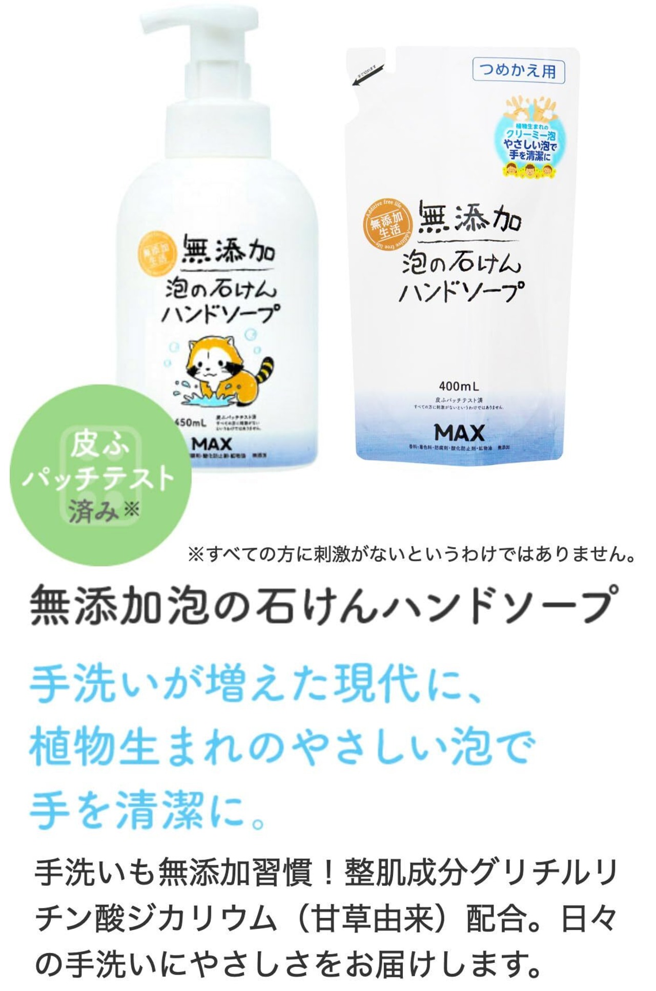 無添加生活 無添加泡の石けんハンドソープ 本体450ml +詰め替え400ml×2個セット 無香料 日本製 大容量 保湿 敏感肌 低刺激 アルコールフリー 無着色 植物由来成分 ラスカルシリーズ