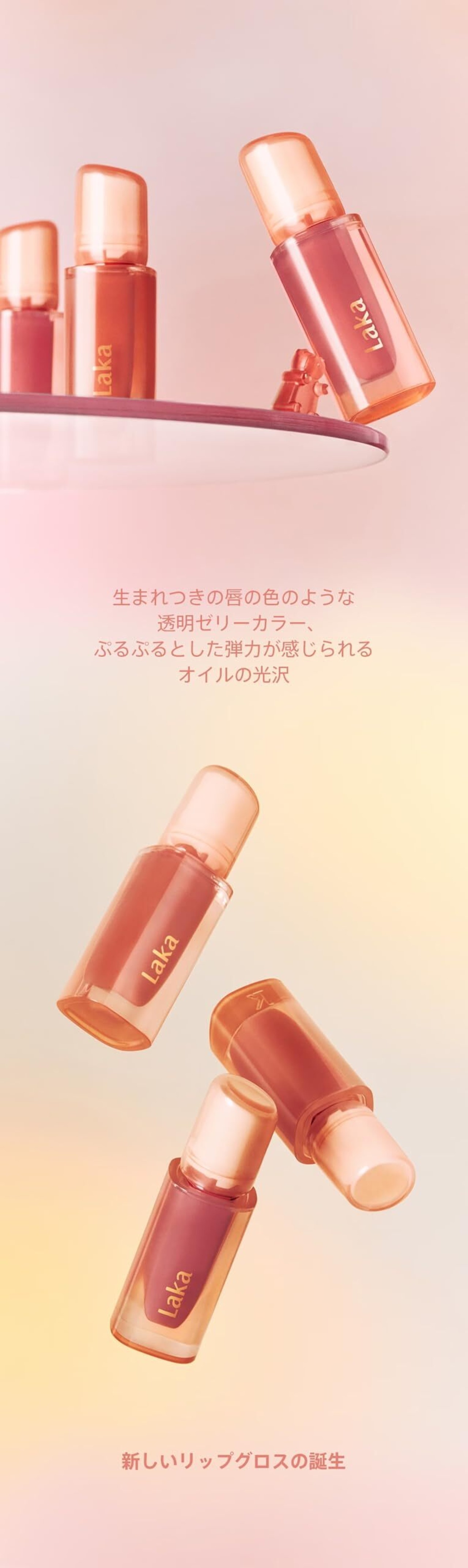 ベタつきにくい透明なオイルが唇の上でレイヤーになり、ジェリーの表面のようなぷるぷるとした高光沢な唇を演出し、持続します。