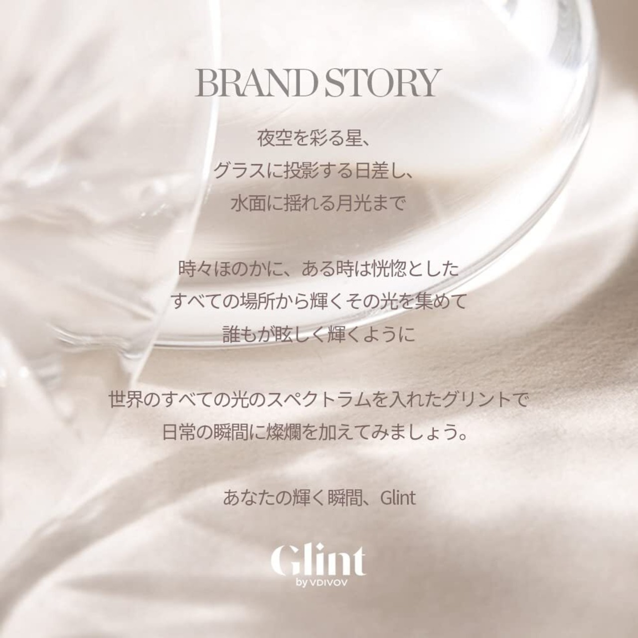 「GLINT, the moment you shine!」 GLINT(グリント)はあなたの毎日が輝くように支えてくれる、韓国発コスメティックブランドです。代表的な商品のハイライターを筆頭として、様々な輝きを化粧品の形で伝えています。