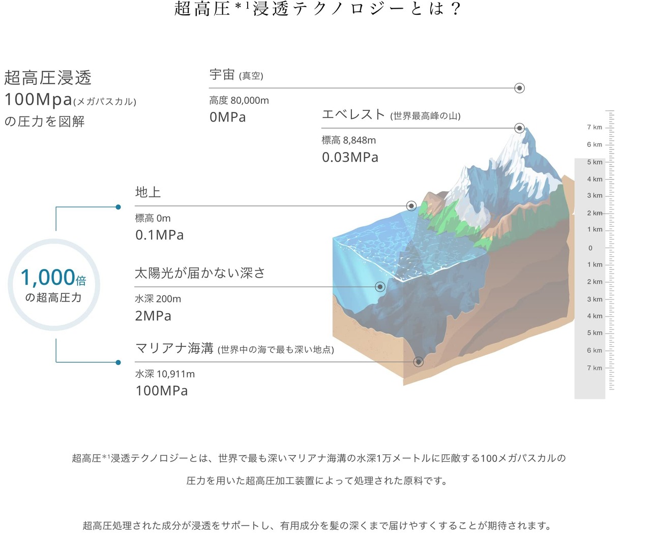 超高圧処理し、浸透力を高めた有用成分が髪の芯まで深く、素早く浸透し、髪のダメージに集中アプローチ。