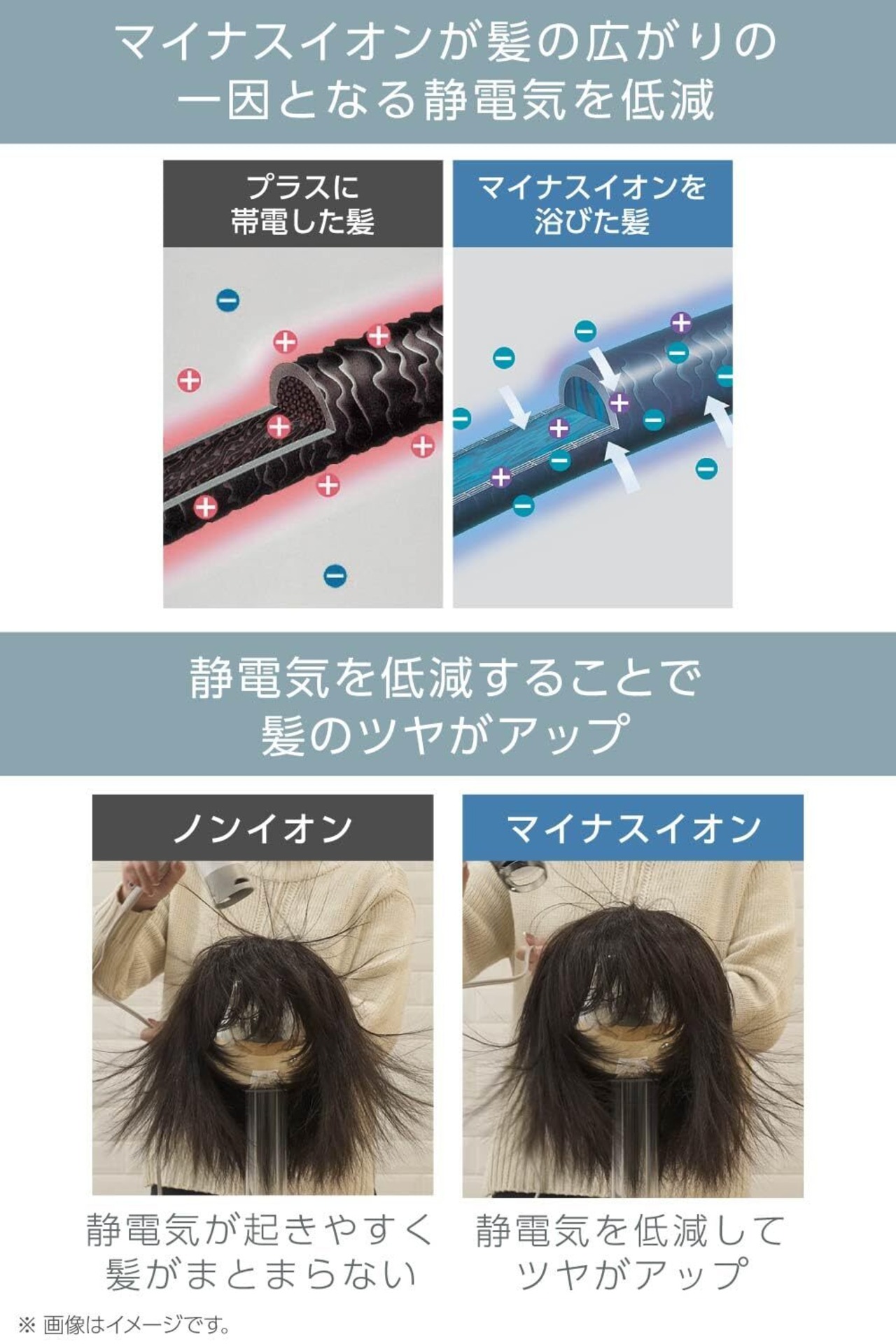 【モイスチャー】マイナスイオンと風を髪全体へ。広範囲に届けます。【ポイント】マイナスイオンと風を集中させる。髪の根元もしっかり乾かせます。※イメージ図