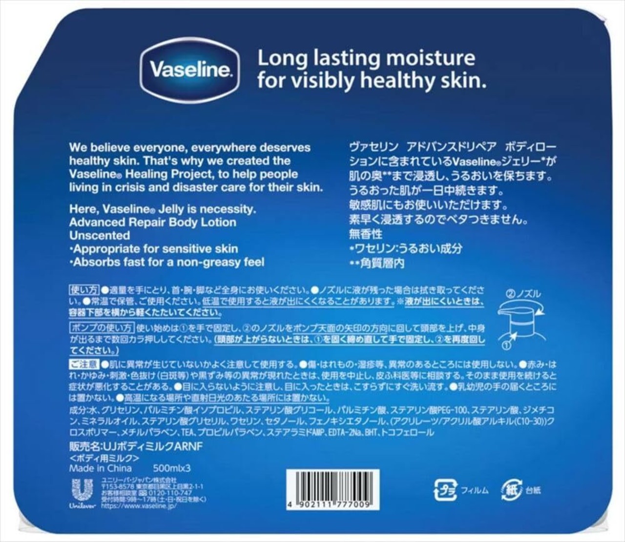 ヴァセリン アドバンスドリペア ボディローション 500ml×3本セット