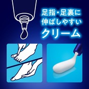 足ムレ感0へ。1日ずーっと足サラサラ。足用クリーム。汗を止めずに乾かすという独自発想のもと「持続型ドライメッシュ技術」を搭載。ドライパウダー(基剤)を含む蒸発膜が、汗を乾かし続けて、肌ずーっとサラサラ。すっきり成分(清涼剤)配合(メントール・ペパーミント抽出液)。足指・足裏に伸ばしやすいクリーム。肌にしっかり密着し、汗をかいても落ちにくい。石けんの香り。足のニオイ気にならない機能性香料配合。