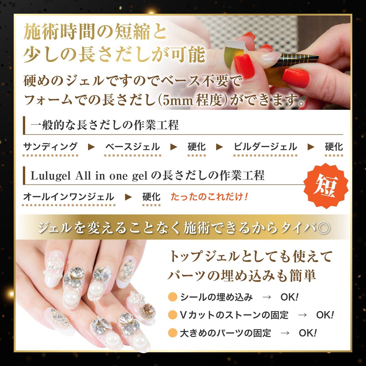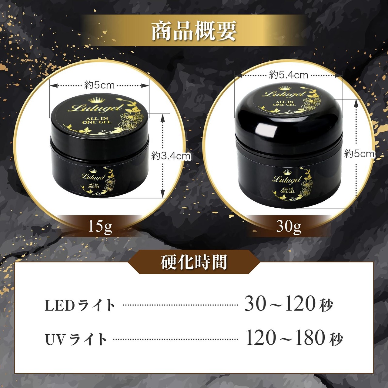 【LULUGEL オールインワンジェル】内容量:30g ベース/トップ/厚みだし/長さだし