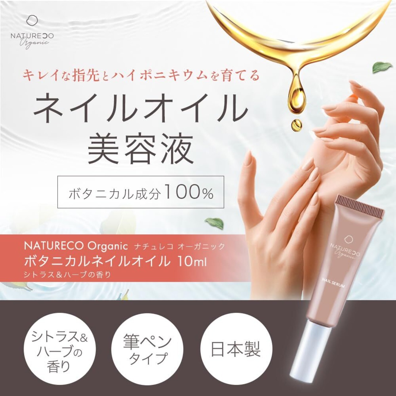 NATURECO オーガニック ネイルオイル ペンタイプ 10ml キューティクルオイル 爪 ケア 保湿 甘皮ケアオイル ネイルケアオイル 爪 オイル 12 の 無添加 シアバター スクワラン ナチュレコ Organic