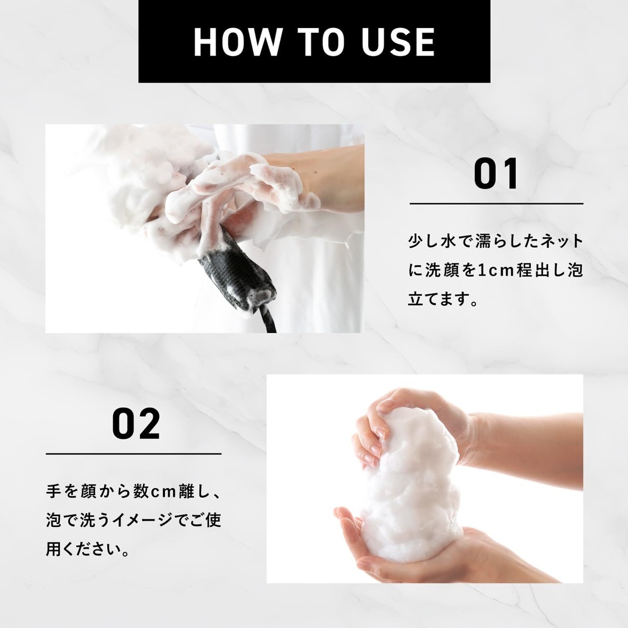 【黒色ネットで泡が映える】 黒色の洗顔ネットは、泡の美しさを引き立てるだけでなく、泡立ち具合を目で見て確認しやすいのが特徴です。清潔感があり、視覚的にも泡の品質を感じられるため、毎日のスキンケアがさらに楽しくなります。