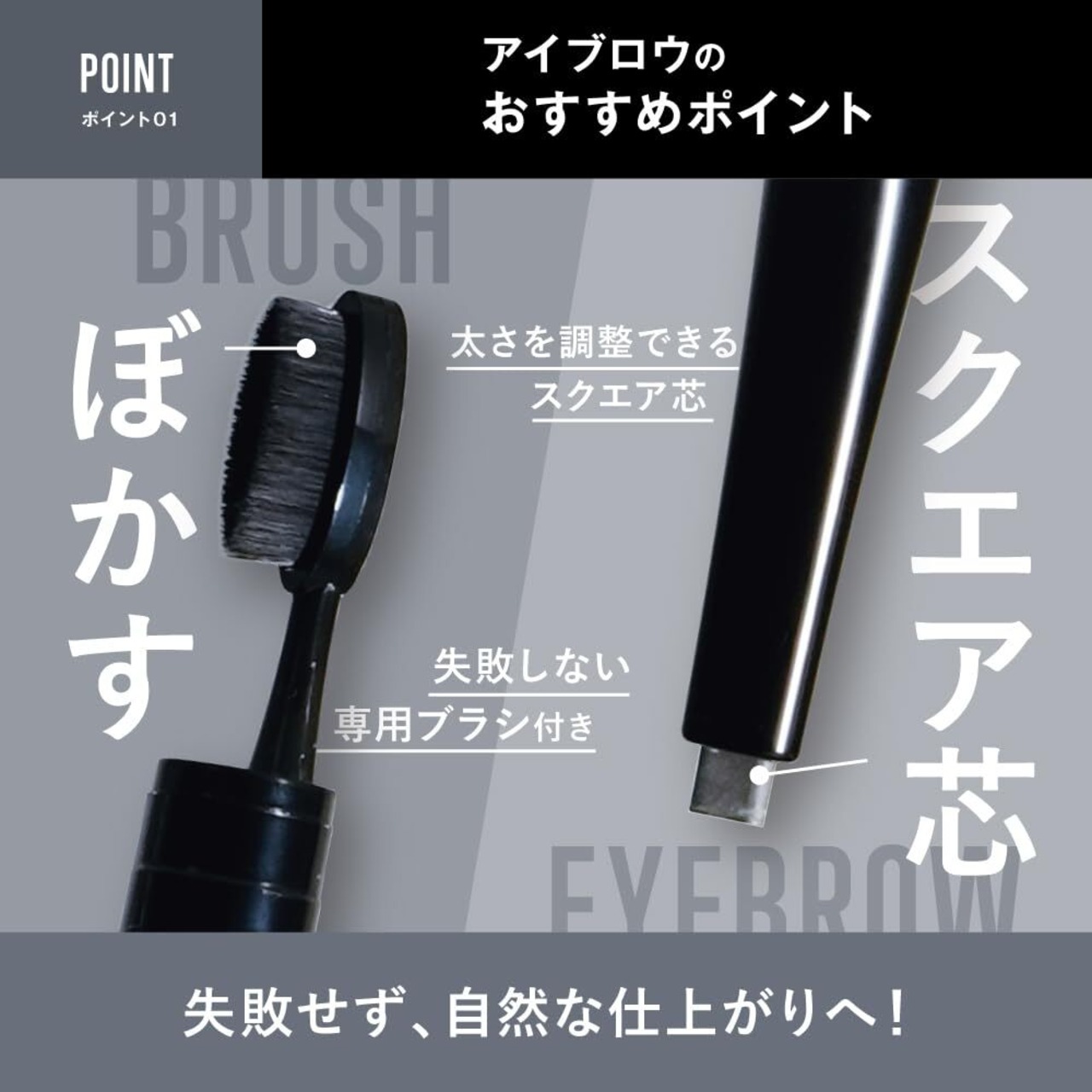 【太さを簡単に調整可能スクエア芯仕様】 スクエア芯で簡単に太さを調整できるから、簡単にキリっと眉に