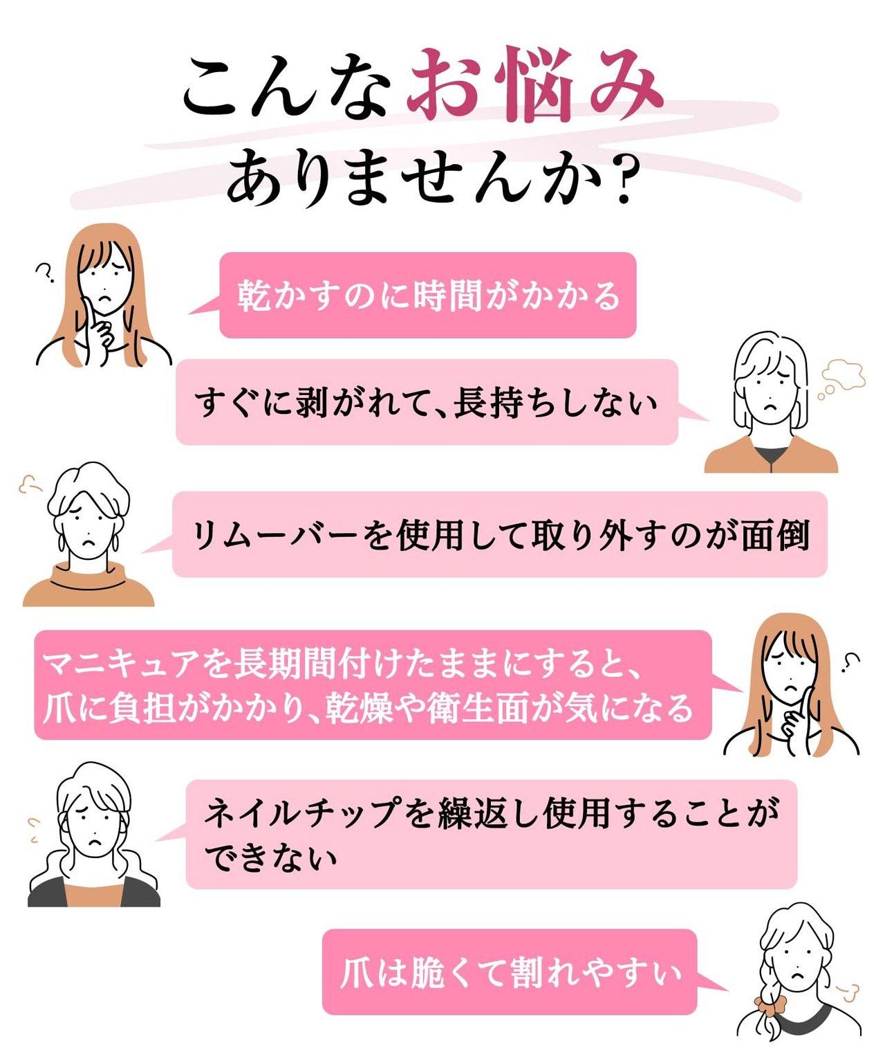 【長時間の強力フィット】 自爪とネイルチップをしっかりと密着させ、剥がれにくく、ずれにくいので、長時間持続します。 水にも強く、手洗いや入浴、洗面台など水回りでも安心してネイルチップを楽しめます。 ※長時間の浸水は避けてください。
