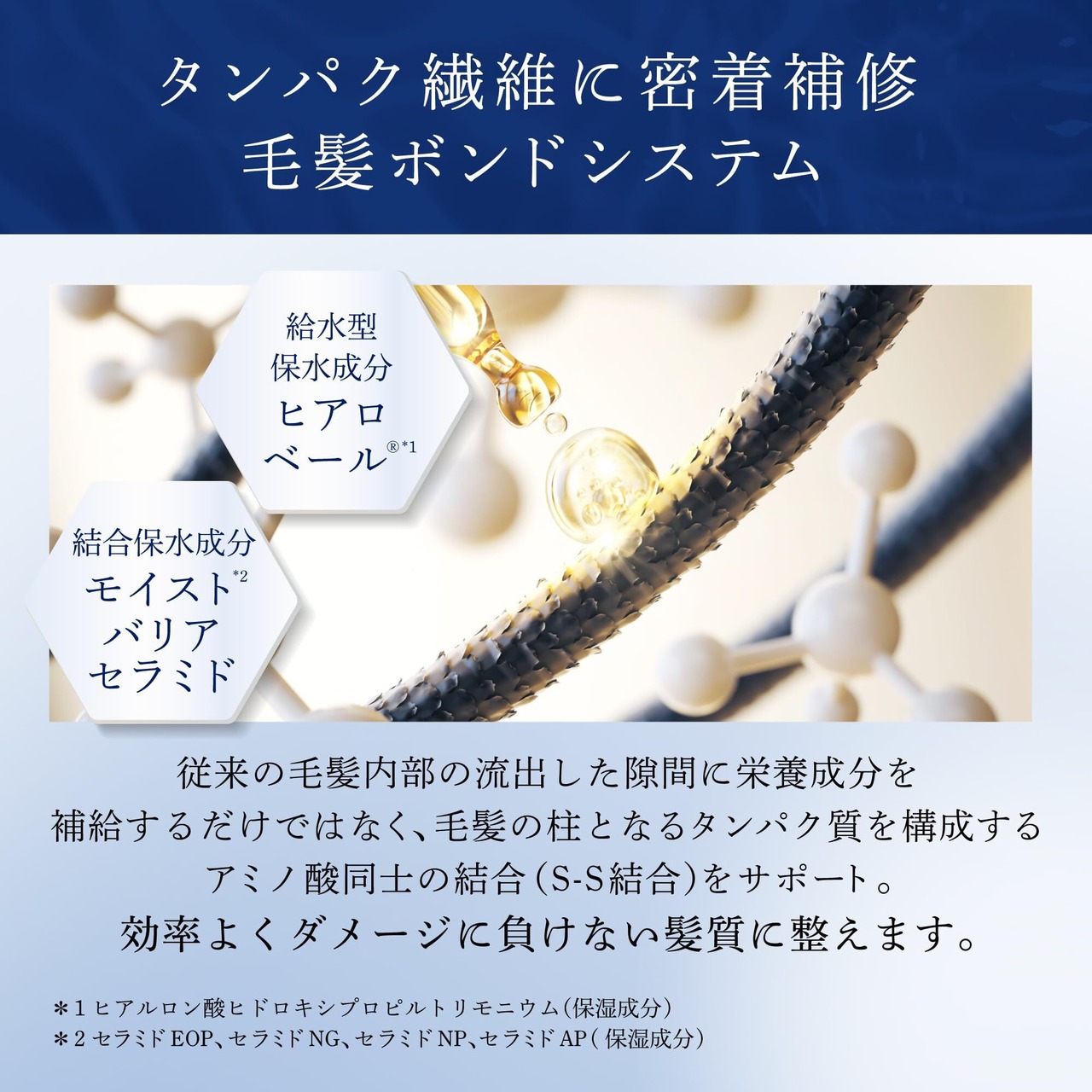 超高圧処理し、浸透力を高めた有用成分が髪の芯まで深く、素早く浸透し、髪の乾燥ダメージに集中アプローチ。 超高圧※1浸透型ハイドロコラーゲン配合※2の濃密補修で乾燥・パサつき髪を修復。