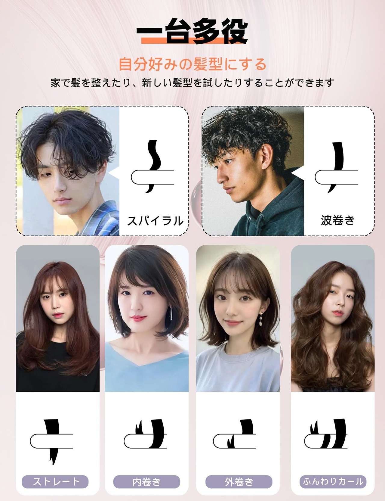 【ストレートもカールも思いのまま2WAY】ストレートはもちろん、毛先のワンカールや、ナチュラルなウェーブも簡単にアレンジ可能。丸みのあるプレート設計で、髪をやさしく包み込み、髪通りもなめらか。1台で多彩なヘアスタイルが楽しめる万能アイテムです。