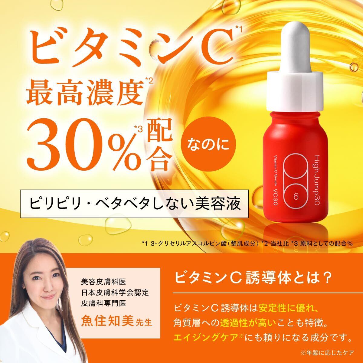 【毛穴悩みを超えていけ】ビタミンC誘導体30%配合の高濃度ビタミンC美容液。乾燥、毛穴、ハリ、くすみ、キメ、肌荒れの6大肌悩みを1本で解決するパワフルな高濃度ビタミンC美容液です。肌にツヤを与えうるおいと弾力をハイチャージ。