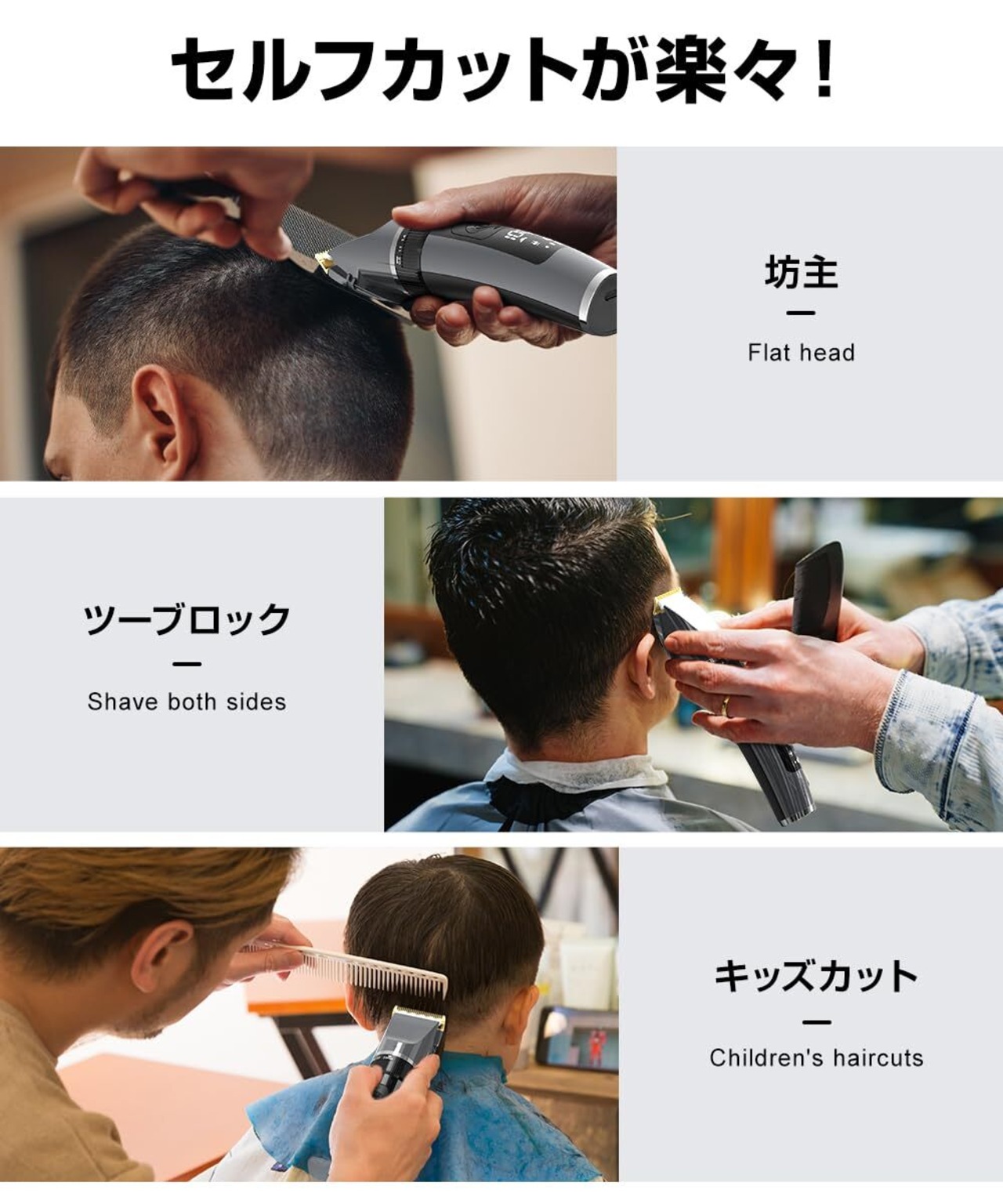 バリカン メンズ 【2025革新モデル・コードレス&極長稼働】 業界TOP大容量バッテリー Type-C充電式 LED大型ディスプレイ 残量表示 5段階刈り高さ 8種類ガイドコーム 低騒音 3段階スピード調節 ヘアカッター 動バリカン 散髪用 髪 水洗い可 安全ロック付き IPX7 防水 ヒゲトリマー 軽量 セルフカット ツーブロック 坊主用 子供 家庭用 日本語説明書