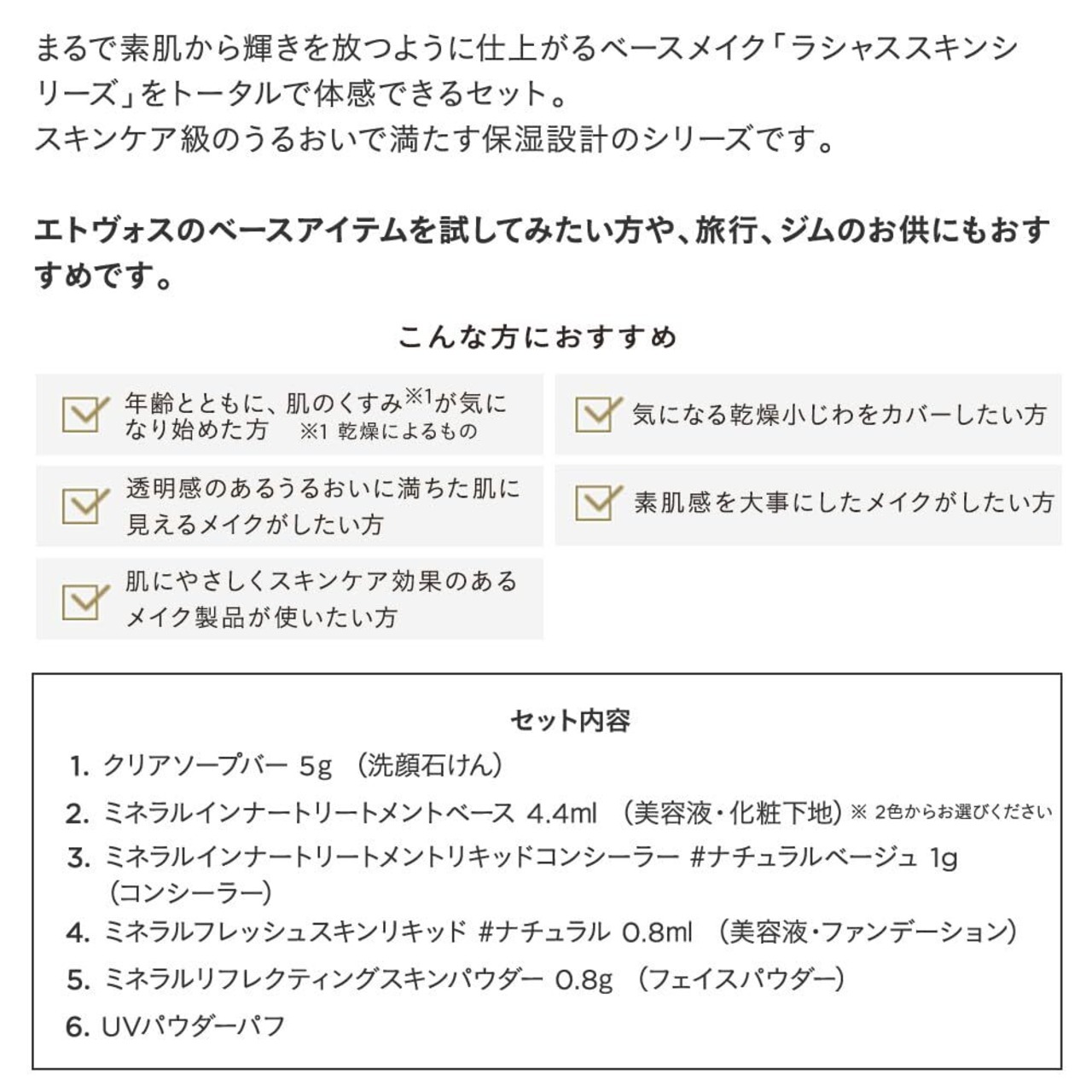 エトヴォス ラシャススキンベースメイクファーストキット #ラベンダーベージュ お試しセット/クレンジング不要/石けんオフ/ミネラルファンデーション/下地/仕上げパウダー/石けん/ミニサイズ/トラベル