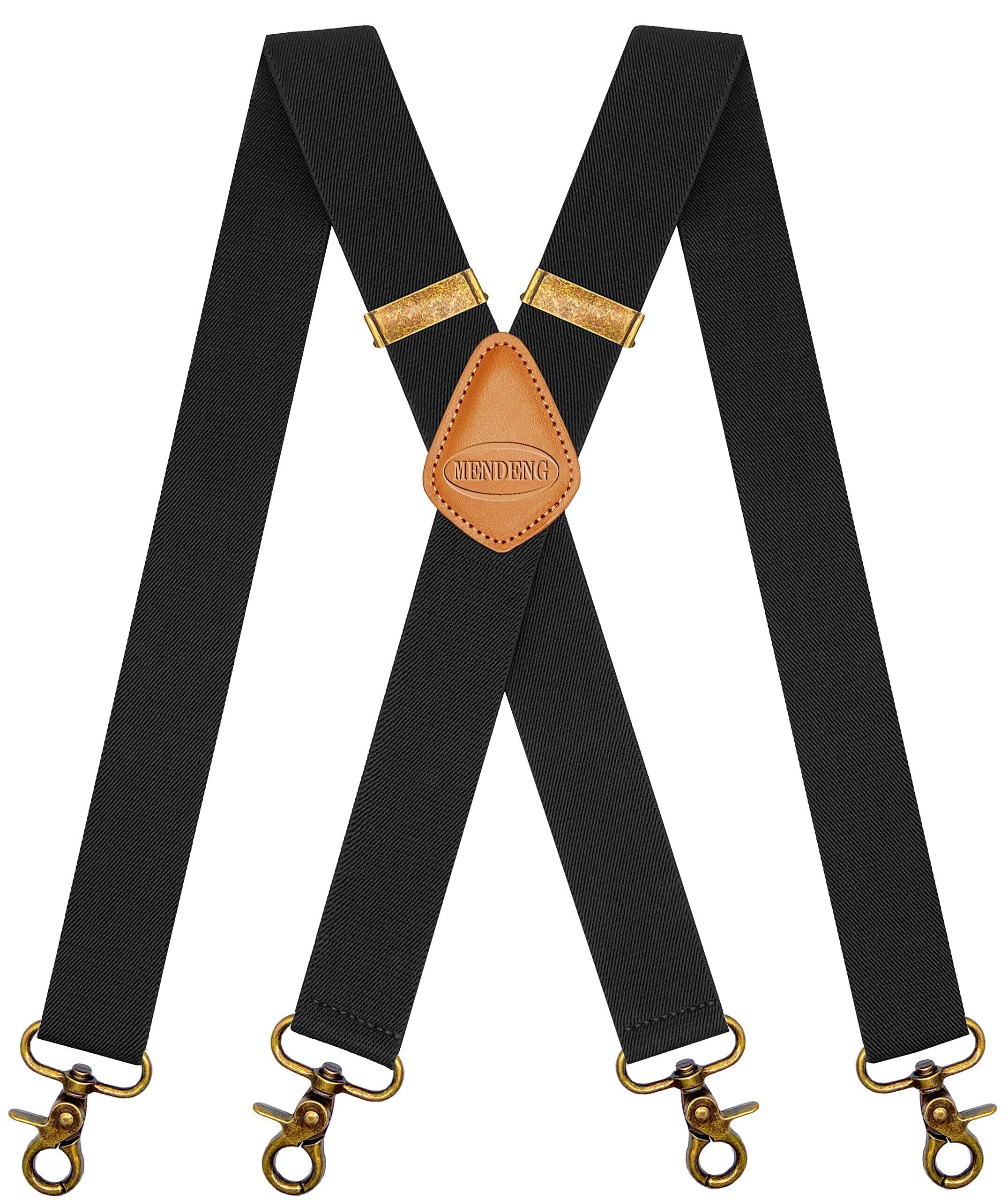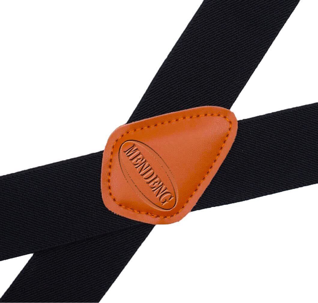 MENDENG メンズサスペンダー X型 無地 多種類 35mm幅 スプリングフック ブラック 本革 調節可能 吊りバンド カジュアル ビジネス プレゼント 結婚式やパーテイなど