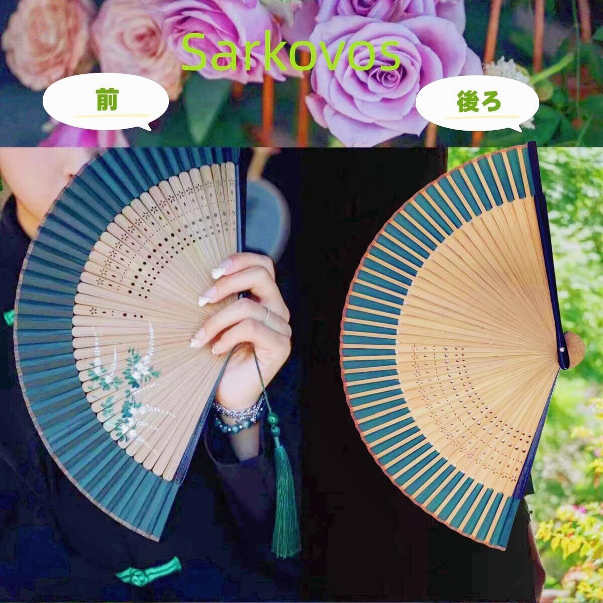 Sarkovos扇子 メンズ おしゃれ 高級扇子 プレゼント 父の日 花火大会用 海外 お土産 浴衣 着物 和小物 夏の祭り 歌舞伎小物 猛暑対策 お土産 (緑花)