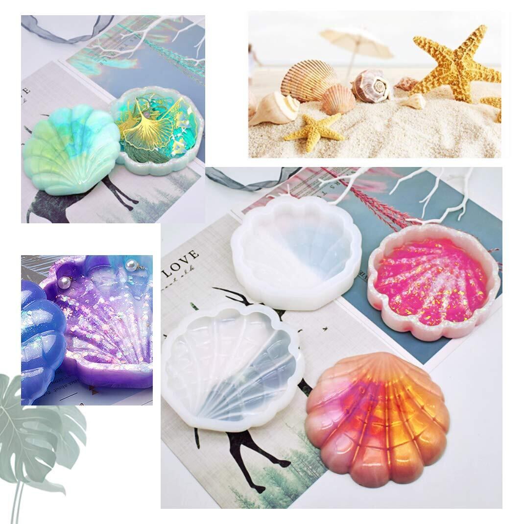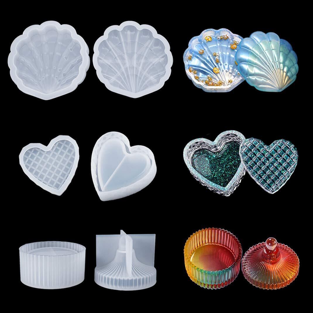 DIYBravo 収納ケース シリコンモールド シェル形 ハート形 円形 3セット DIY 手作り 収納用 小物入れ アクセサリー ジュエリー 収納ボックス エポキシ樹脂 レジン液 半透明 立体型 (収納ケース形)