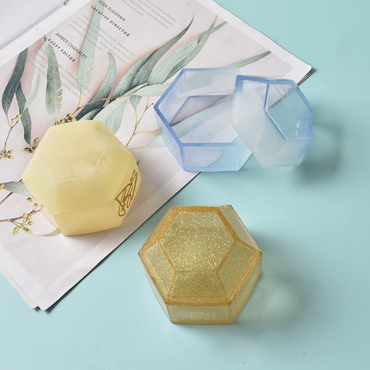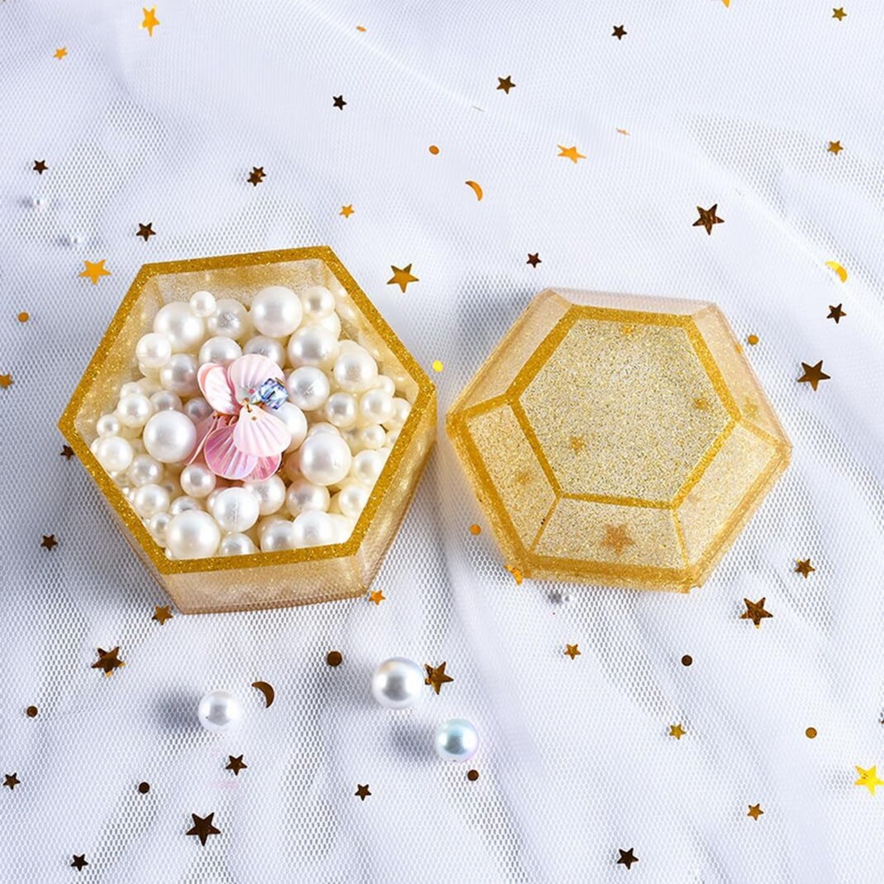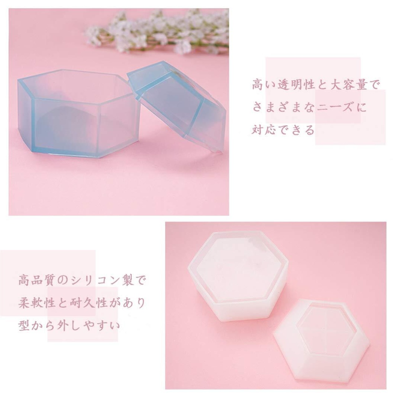 DIYBravo 収納ケース シリコンモールド 六角形 1セット 収納ボックス DIY 手作り 収納用 小物入れ 手芸用品 アクセサリー ジュエリー エポキシ樹脂 半透明 立体型 抜き型 再利用可能 (収納ケース型)