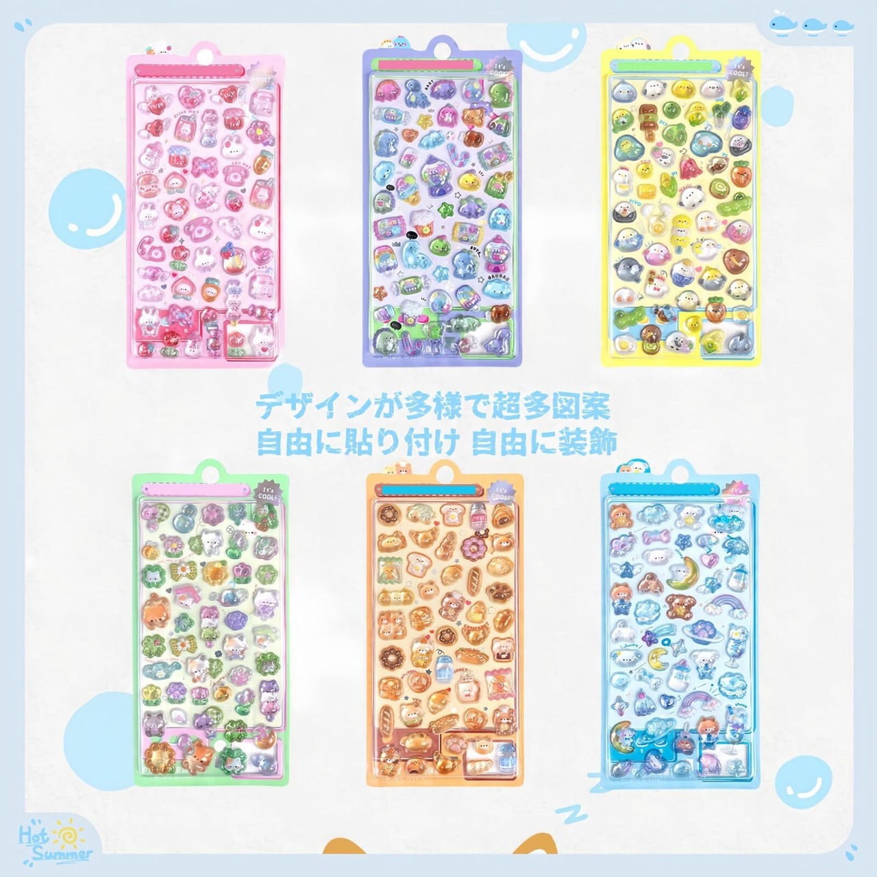 ぷくぷくシール 可愛い 6枚セット 立体 ごほうびシール キラキラな 3D ステッカー デコシール 携帯電話飾り用 DIY用 手帳用 貼り付け可能 手芸用品 贈り物 子供 女の子 (A)