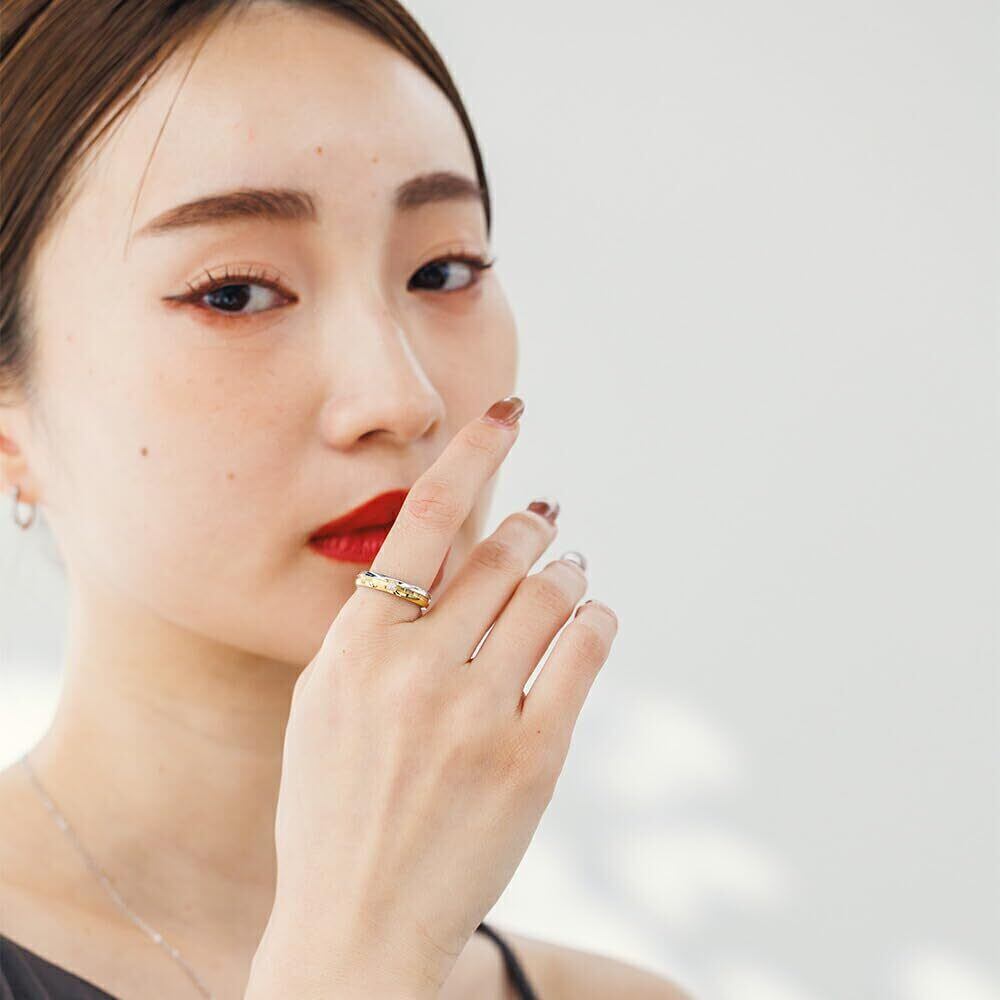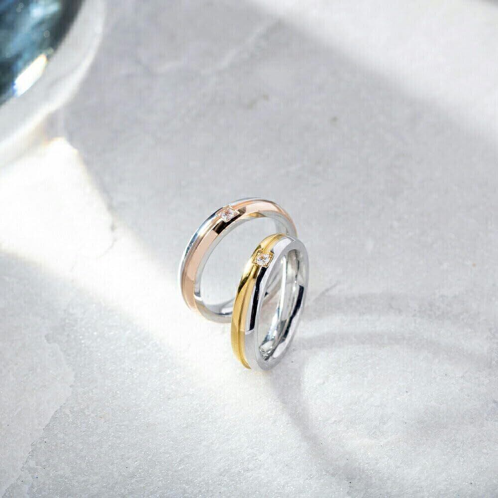 mico.lor ステンレス リング (263) CZ バイカラー キュービックジルコニア 金属アレルギー対応 レディース メンズ 太め サージカルステンレス 316L コーティング
