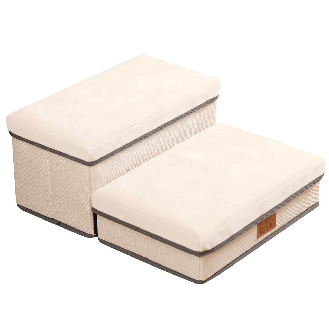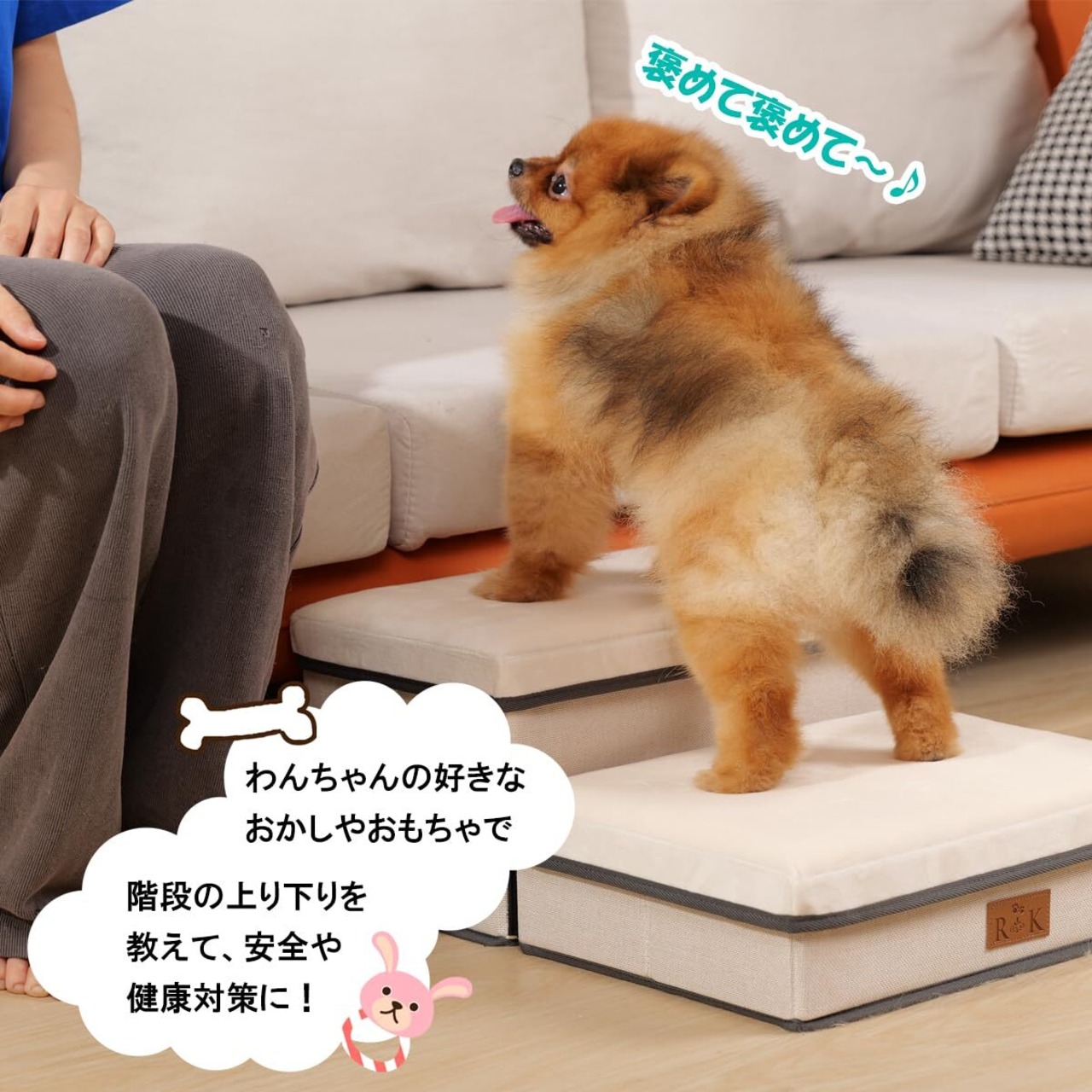 RK ペットステップ ドッグステップ ペット ステップ 階段 犬の階段 2段 タイプ 収納ボックス 組立 折りたたみ コンパクト 軽量 踏み台 スロープ 国内検品済 バニラアイボリー