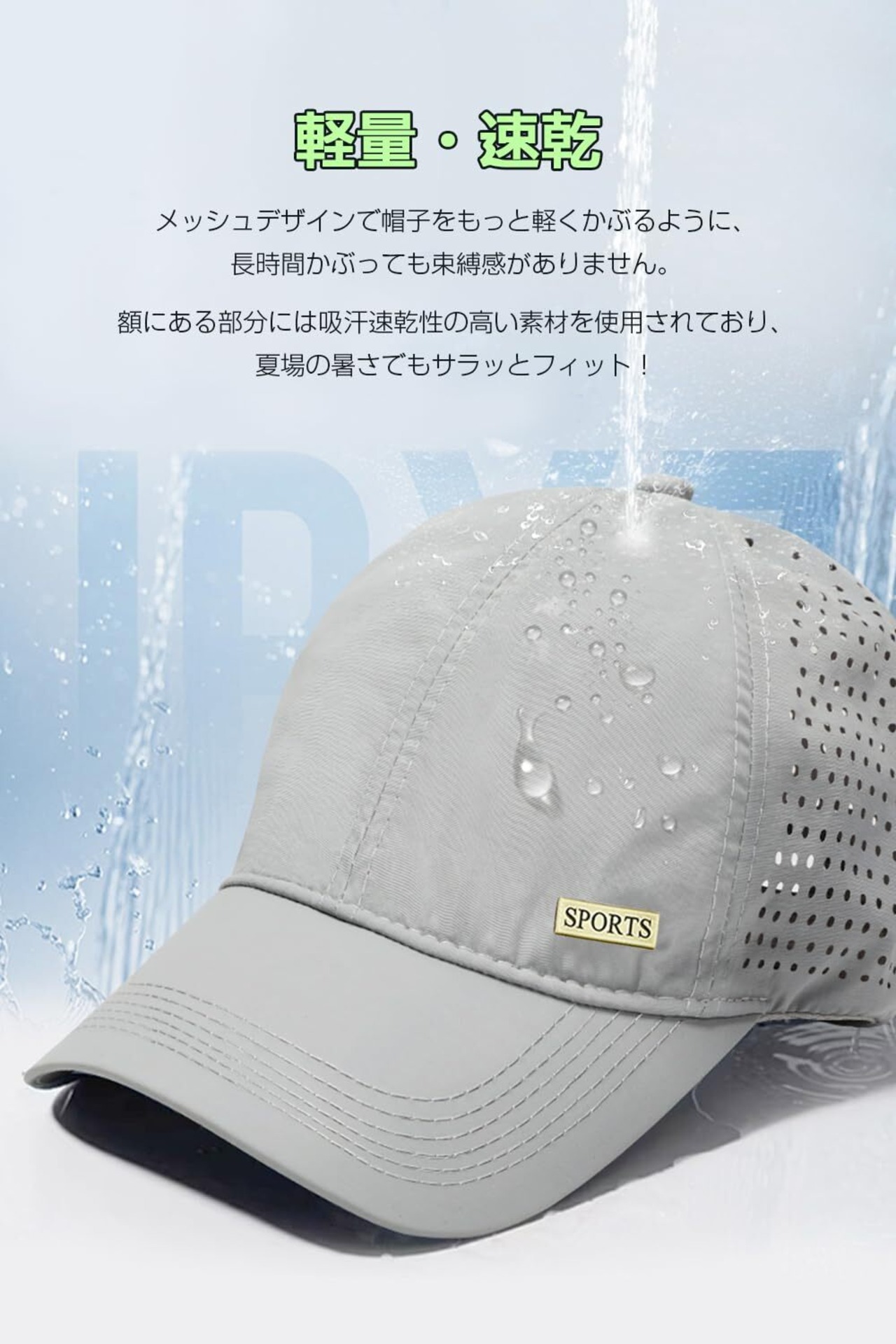【抜群な通気性】夏に相応しいメッシュキャップが登場して、通気性と速乾性も兼ね備えているメッシュキャップ、これからの時期の気になる紫外線対策にも最適です!蒸れにくいメッシュ生地で通気性が素晴らしくて、熱をメッシュ穴から排気し、空気を循環させることで蒸れを軽減します。長時間の着用しでも快適な被り心地を保ちます。