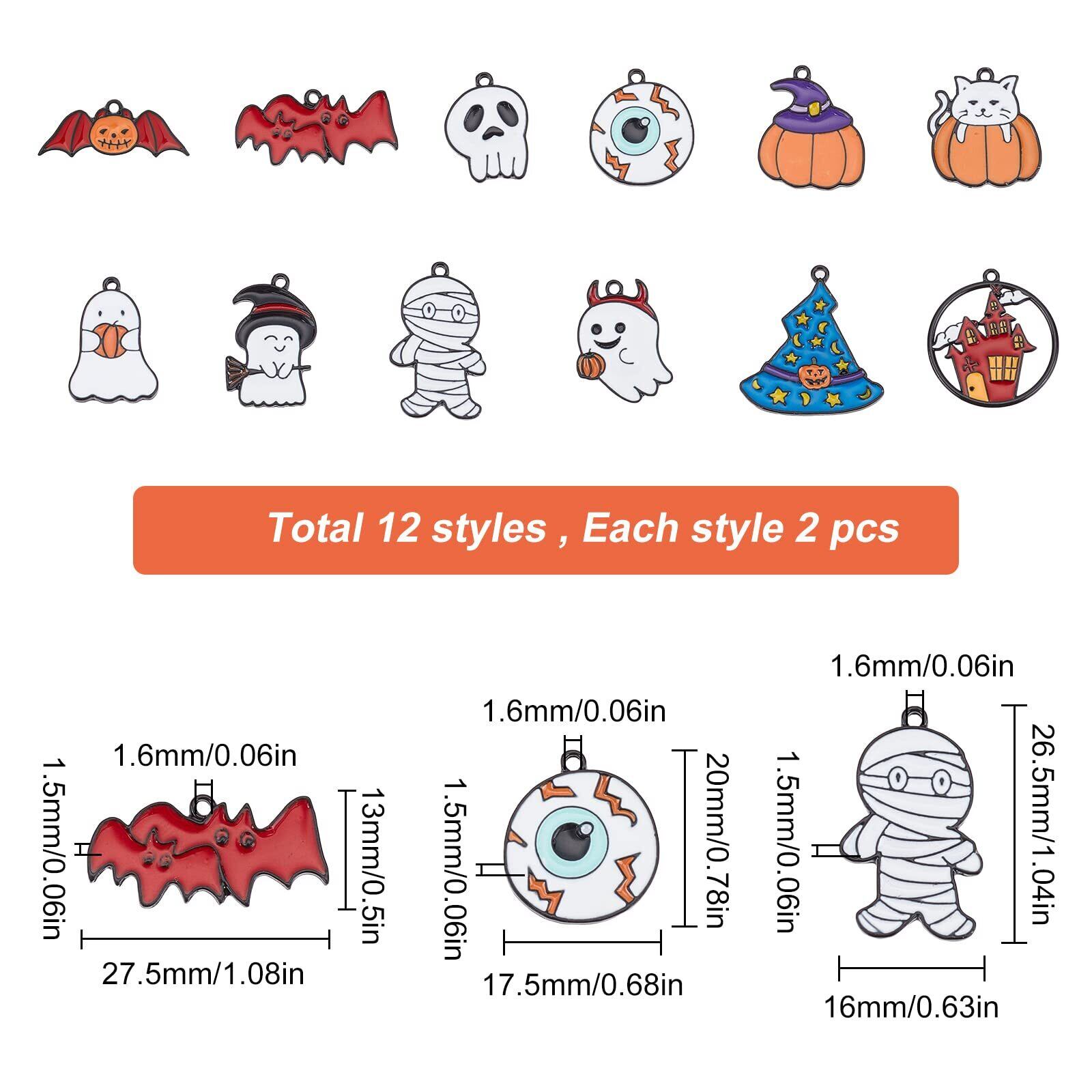 SUNNYCLUE 24個12種 ハロウィン チャーム ハロウィン ペンダント エナメル ペンダント 蝙蝠 城 パーツ ミイラ スカル ピアス 猫 幽霊 イヤリング 帽子 魔女の帽子 ネックレス ねこ ゆうれい ブレスレット 南瓜 しろ ネコ キーホルダー 鬼 魔法使いの帽子 メタルパーツ ヴィンテージ アンチック 眼球 エナメル 合金ペンダント コウモリ がんきゅう マカロン チャームパーツ カボチャ こうもり アクセサリー 基礎パーツ ジュエリー作り レディース デコキット クラフト手芸 手作りハンドメイド キット DIY飾り物