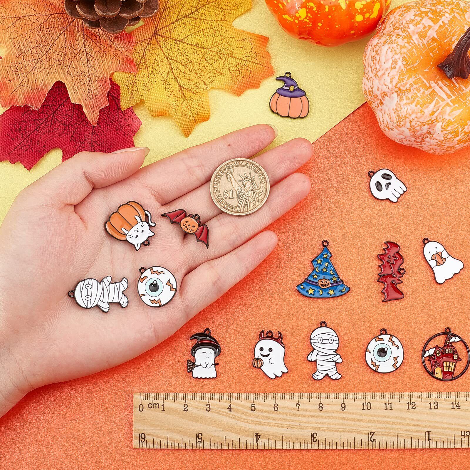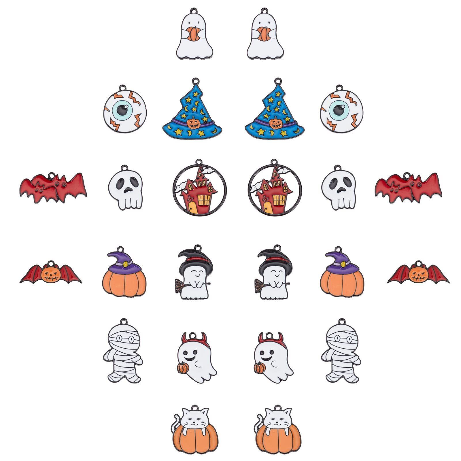 SUNNYCLUE 24個12種 ハロウィン チャーム ハロウィン ペンダント エナメル ペンダント 蝙蝠 城 パーツ ミイラ スカル ピアス 猫 幽霊 イヤリング 帽子 魔女の帽子 ネックレス ねこ ゆうれい ブレスレット 南瓜 しろ ネコ キーホルダー 鬼 魔法使いの帽子 メタルパーツ ヴィンテージ アンチック 眼球 エナメル 合金ペンダント コウモリ がんきゅう マカロン チャームパーツ カボチャ こうもり アクセサリー 基礎パーツ ジュエリー作り レディース デコキット クラフト手芸 手作りハン