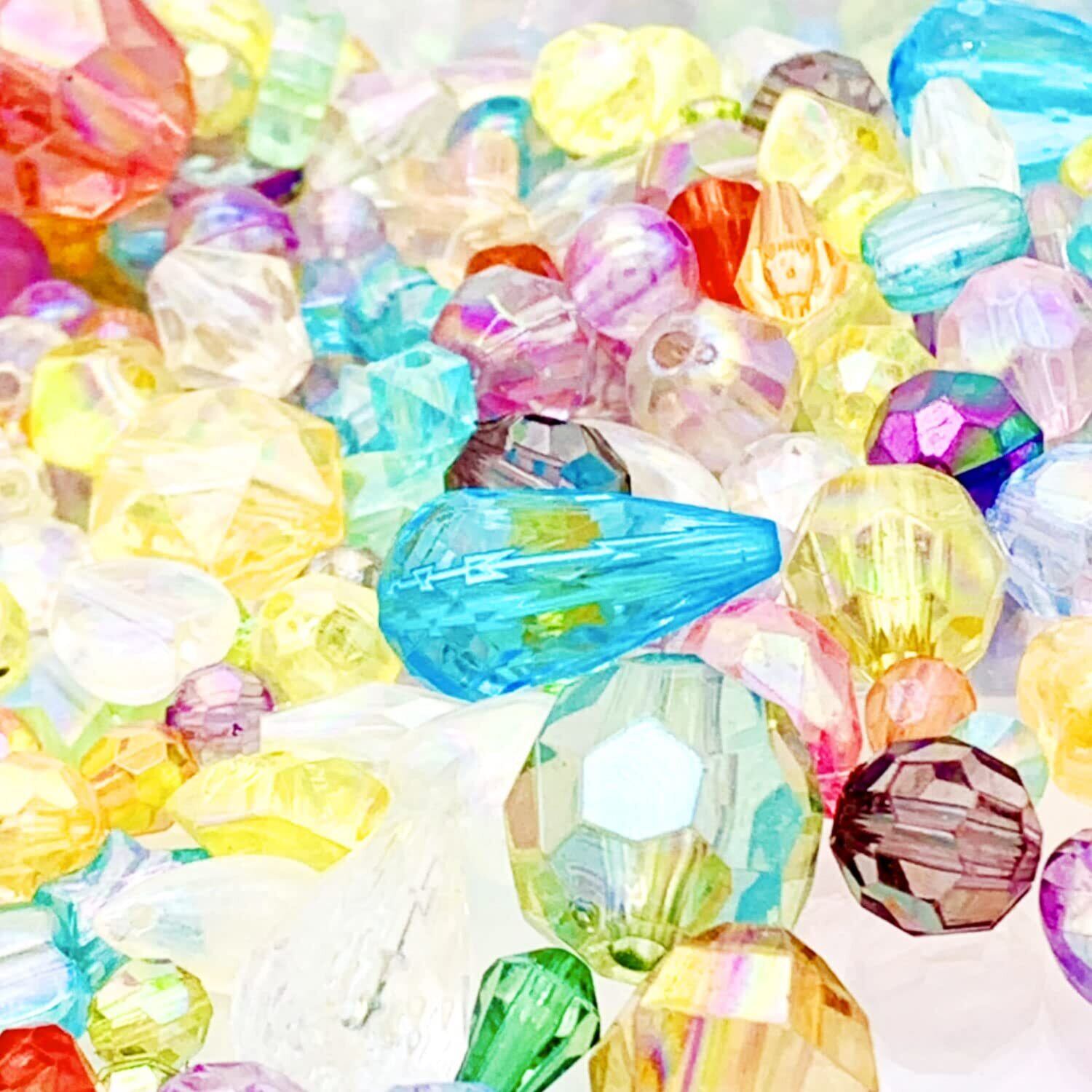 大容量 500個以上 宝石みたいな きらきらビーズ 詰め合わせセット アソート 大きめ 大小 ミックス ティアードロップ ファセットカット たくさん ハンドメイド アクセサリー きれいめ キュート アクリルビーズ【森の雑貨屋さん】