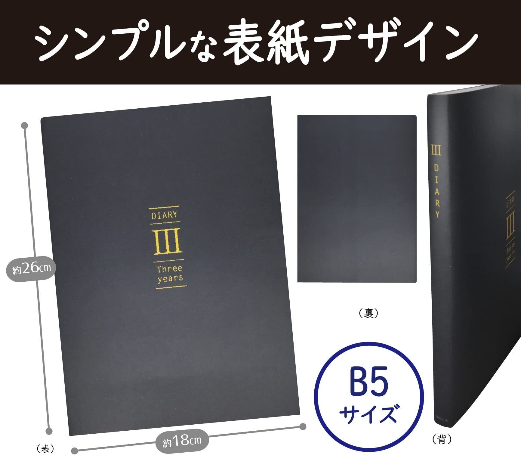 ノートライフ 3年日記 日記 方眼仕様 B5 (26cm×18cm) 日本製 ソフトカバー 日付け表示あり (いつからでも始められる) (黒、しおりあり)