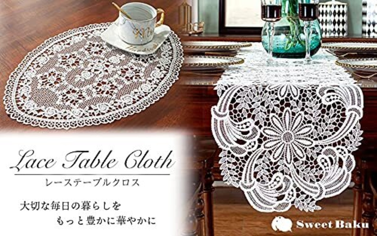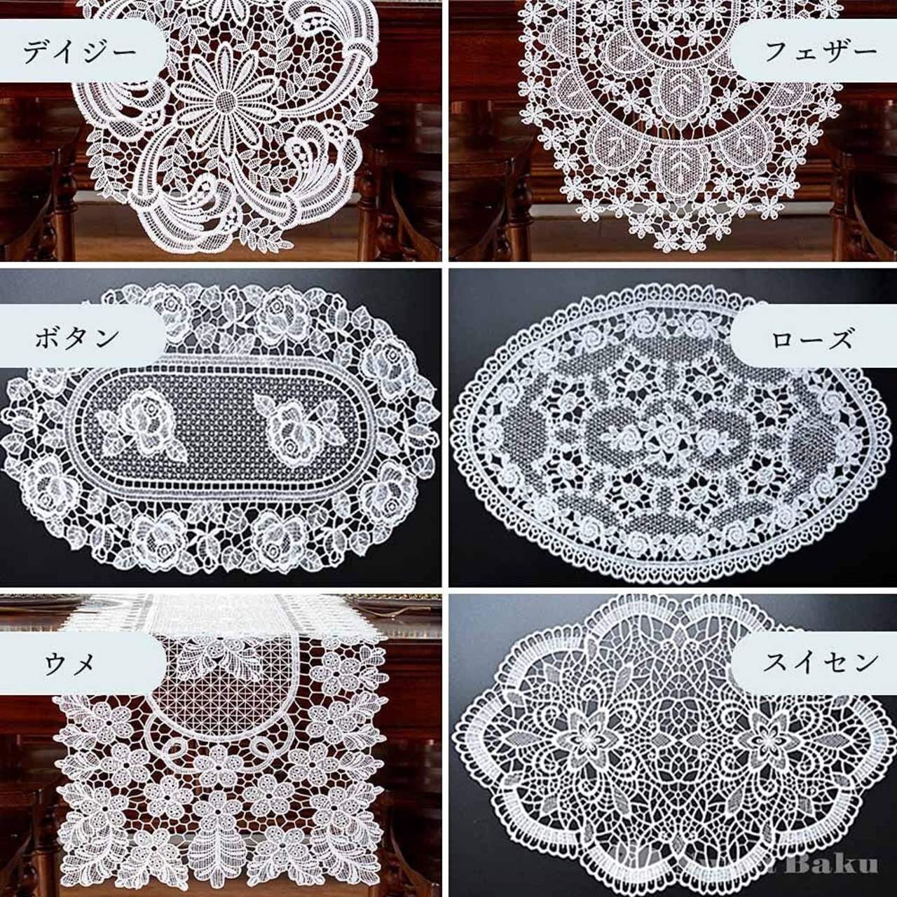 SweetBaku ヨーロピアンレース ドイリー ランチョンマット テーブルセンター テーブルマット クロス 30×45 30×90 (45㎝ フェザー)