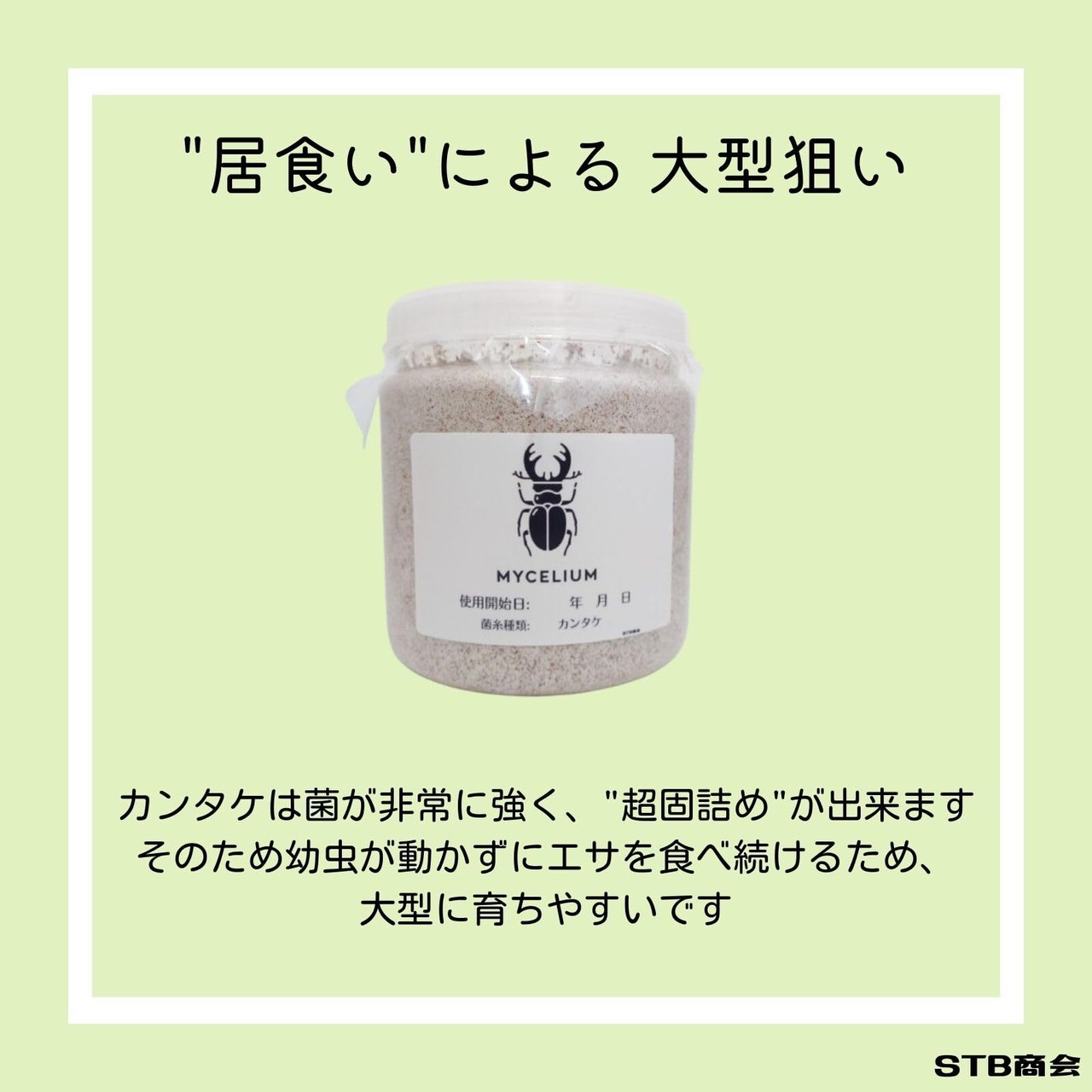 【種菌】:寒茸 (カンタケ)【適応品種】:オオクワガタ、ホーペ、グランディス、クルビデンス、アンタエウス、シェンクリング、ヒラタクワガタ、シカクワガタ、フタマタクワガタ、ギラファノコ、パプキン、ニジイロ等