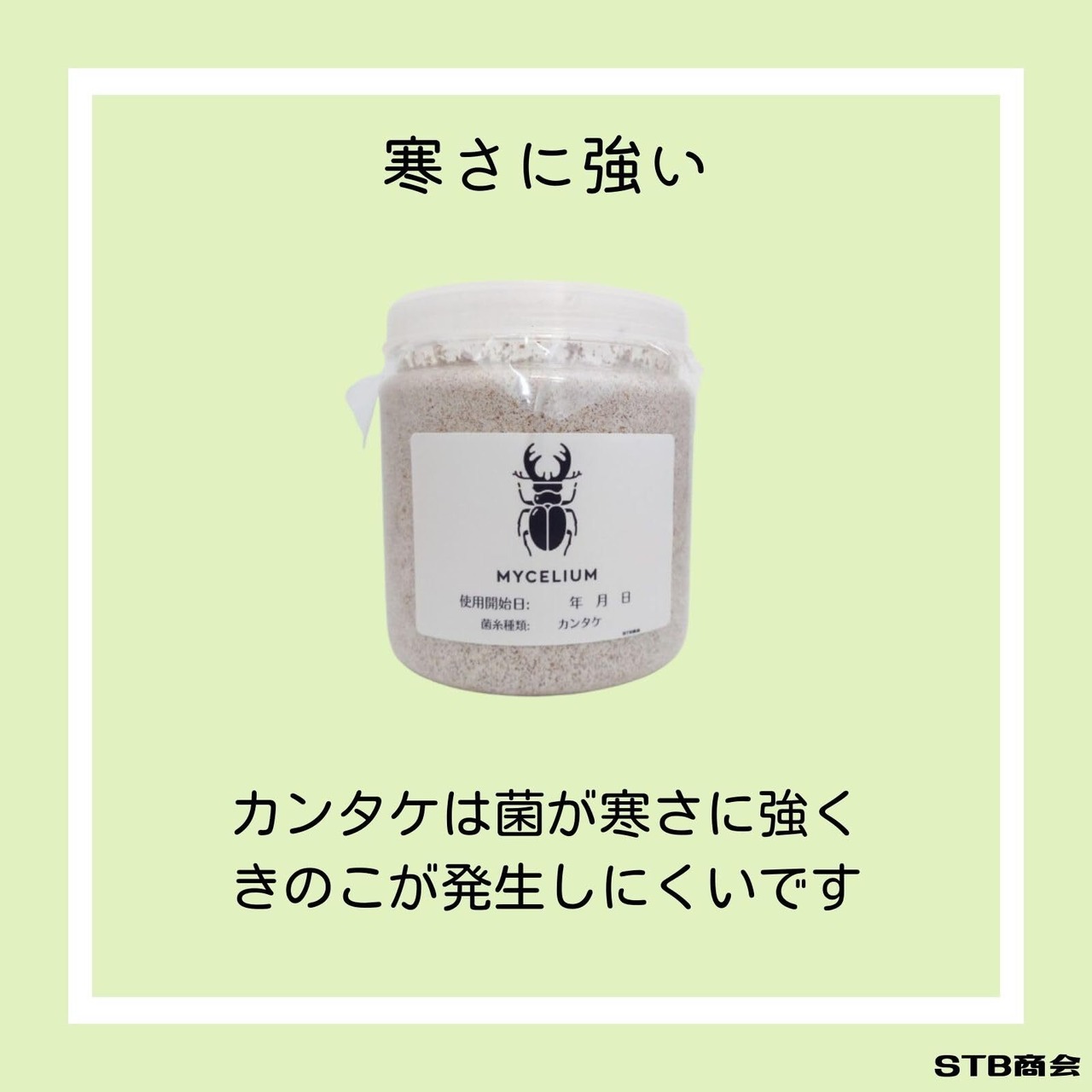【特長①】:3年間に及び劣化実験や生体ブリードを繰り返し、寒茸を提供しております。寒茸は名の如く、5℃以下にならないとキノコの発生ほぼありませんので、劣化しづらく、扱いやすいです。(物理的な振動や光できのこが出る事もある)