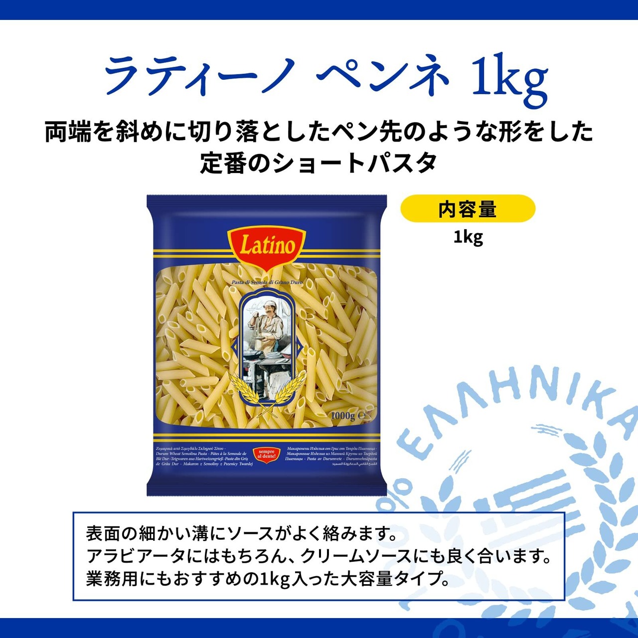 Latino(ラティーノ) ペンネ ショートパスタ 1kg 大容量 業務用 パスタ デュラム小麦100% ギリシャ産