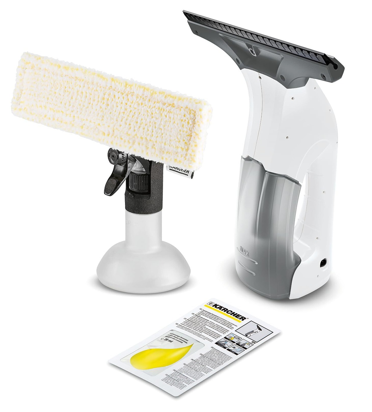 付属コンポーネント スプレーボトル、ワイプパッド、窓用バキュームクリーナー専用洗浄剤、充電アダプター、取扱説明書