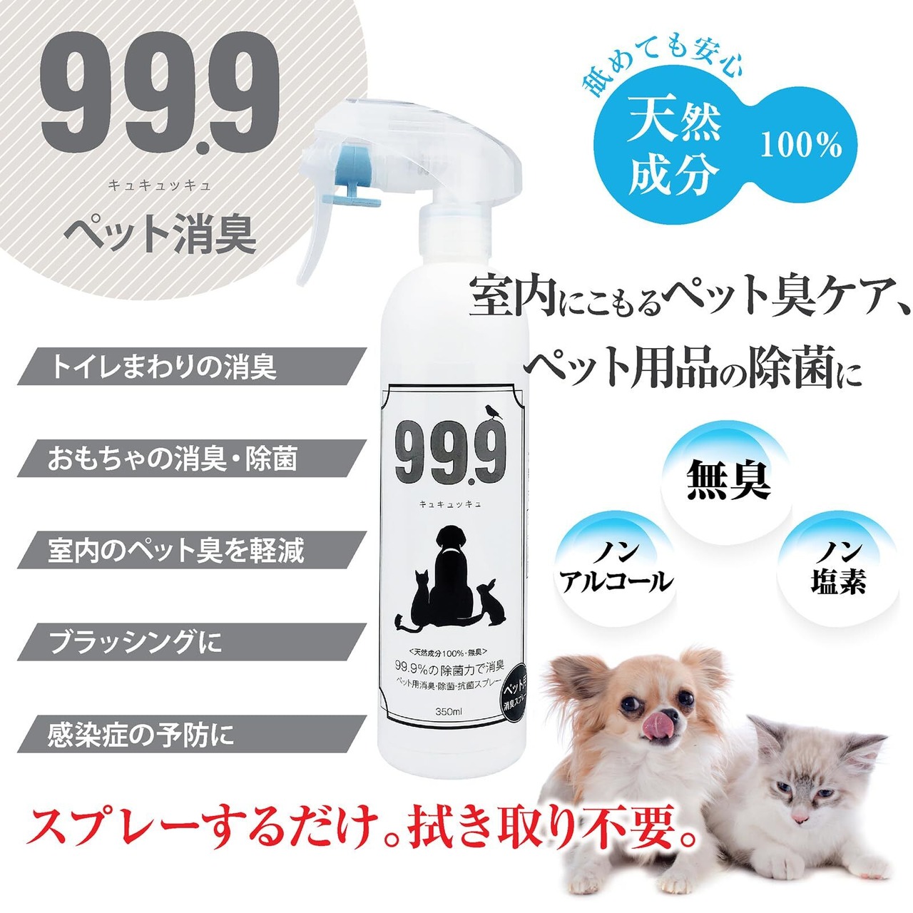 99.9(キュキュッキュ)ペット用消臭除菌スプレー&ペット用洗浄スプレー 350ml セット