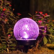 直径15cm! GWSOLAR 【ソーラーランタンライト 屋外 置物ライト】【美しいガラスボールの亀裂とボリューム感のある幻想的な光り演出!!】おしゃれ マルチカラー LED ランタン 庭園灯 自お庭 歩道 卓上 ガーデン・テラス ランタン 装飾【GW-DO316/V-15】 (マルチカラー1個入り)