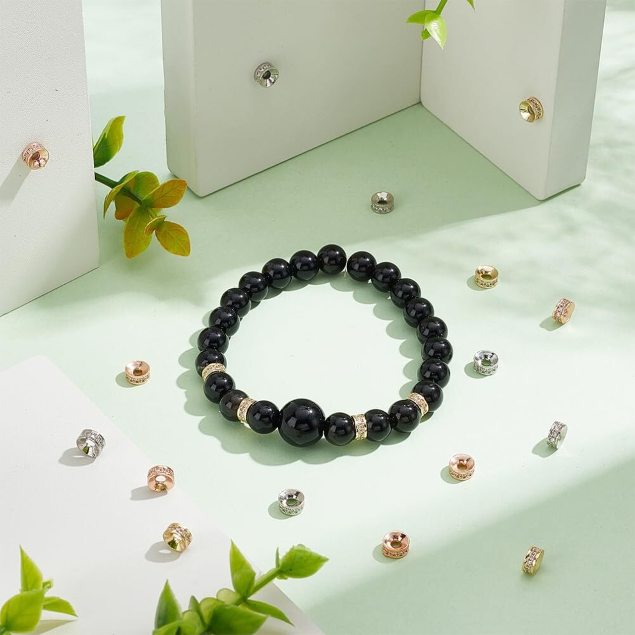 PH PandaHall ロンデル 6mm 30個 平型 スペーサービーズ ラインストーンビーズ ジルコニア メタル ビーズ アクセサリーパーツ ジュエリー 手芸 クラフト用品 手作り素材 DIY材料 3色