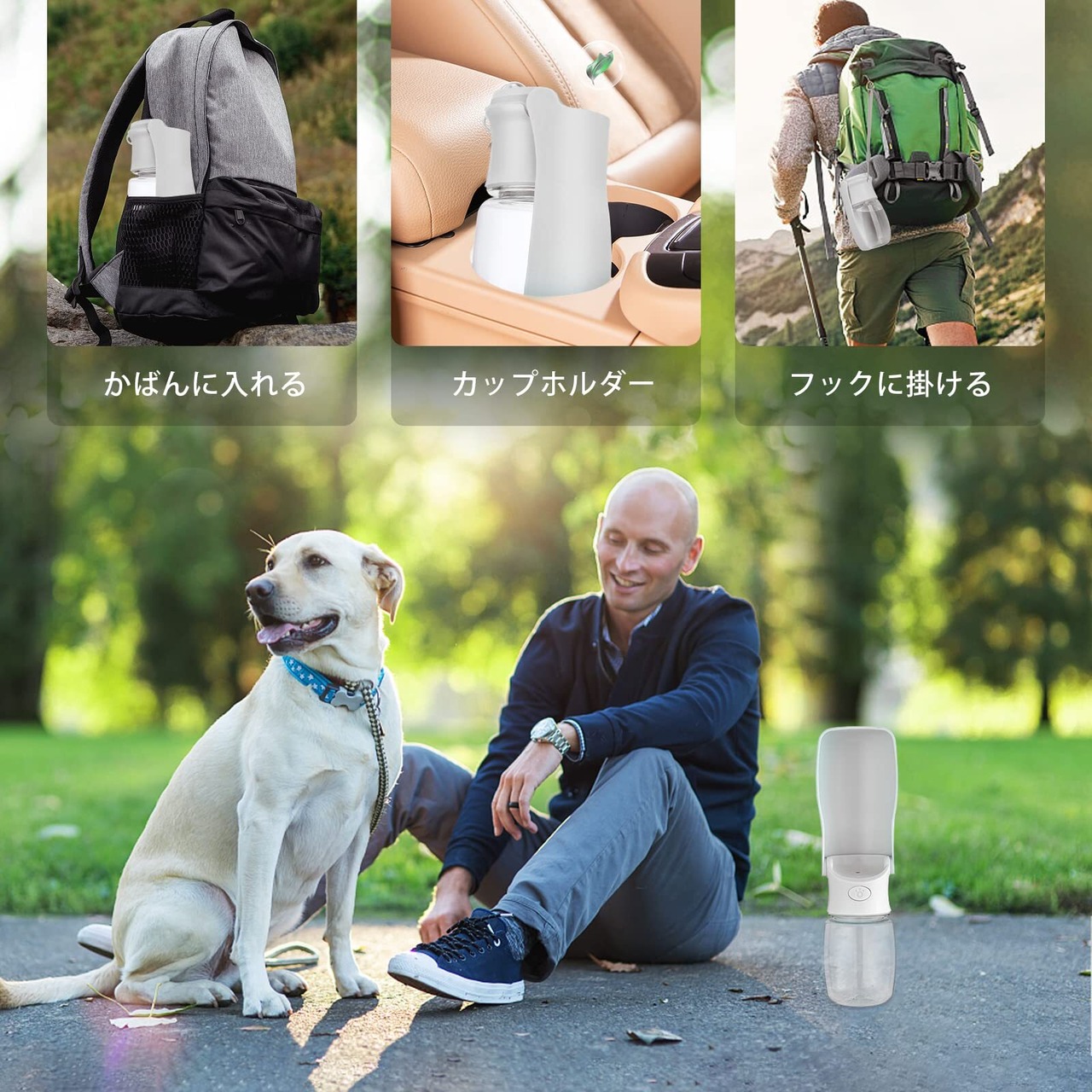Wodondog ペットウォーターボトル 折り畳み 350ml 携帯用水飲みボトル 給水器 お散歩用水筒 犬 水入れ 犬 猫など アウトドア 夏 お出かけ (350ml 白)