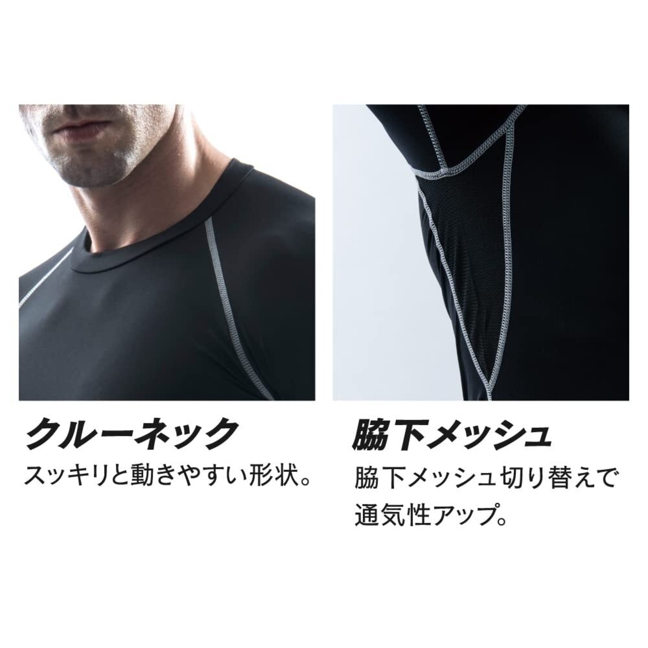 おたふく手袋 夏用インナー 半袖 丸首 接触冷感 吸汗速乾 消臭 コンプレッション UVカット メンズ JW-628 ブラック 3L