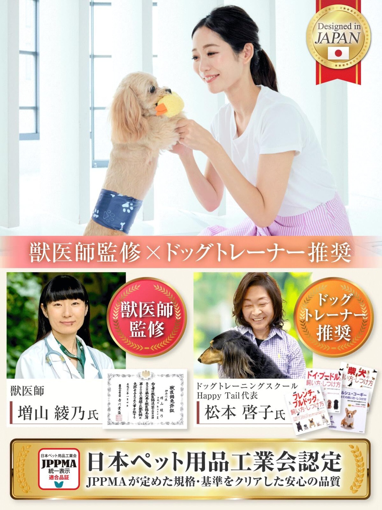 ペットの専門家「獣医師」監修のペットマナーベルトです。ワンちゃんの肌に当たる部分には通気性に優れたメッシュ素材を採用しており、蒸れにくく快適に過ごせるよう設計されています。さらにソフトタッチで肌触りが良くワンちゃんの皮膚を傷付ける心配がありません。