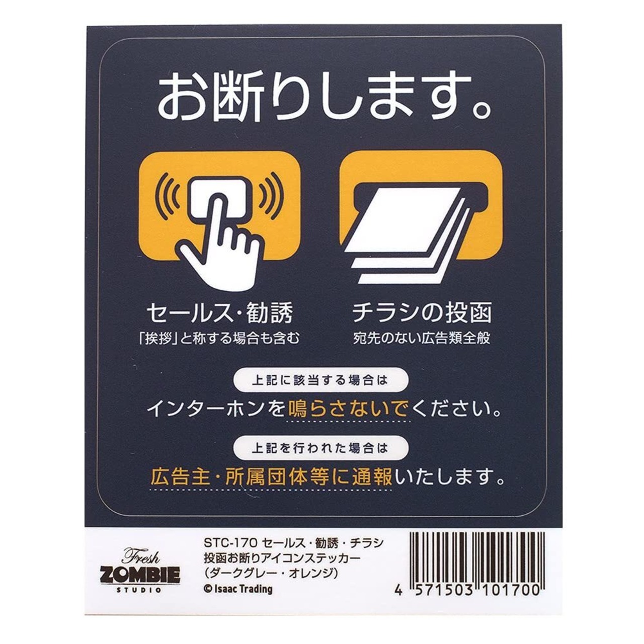 Isaac Trading セールス 勧誘 チラシ お断り アイコン ステッカー インターホンサイズ (84×90mm) (ダークブルー/オレンジ) STC-170