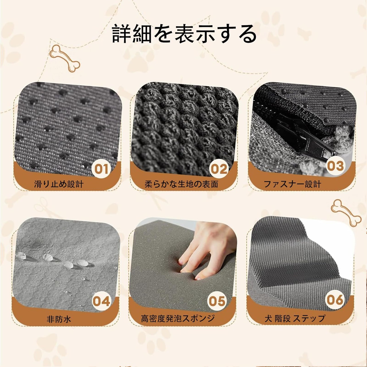 【犬 階段 ユニークなデザイン】純粋な泡の30D密度により、っていて、クッション性もリバンド性もよく,この階段はペットが上を歩くときにより安定します。犬用ベッドステップはペットが移動する際に強力なサポートを提供します。低角度斜面設計で関節を保護します。