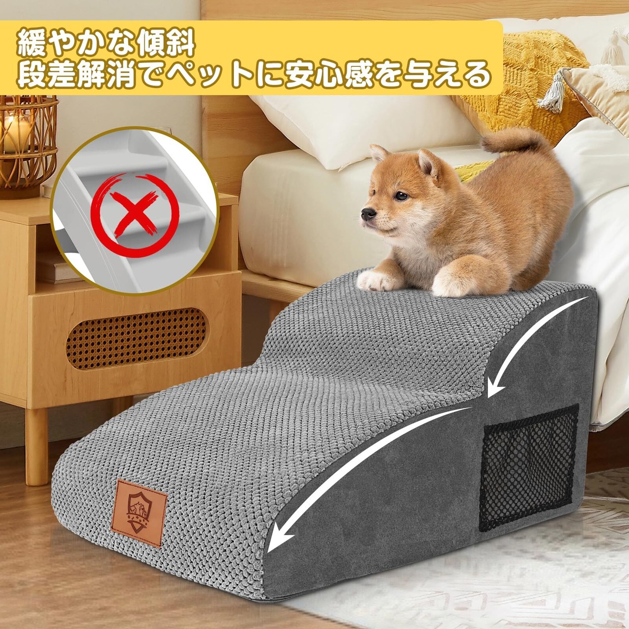 ZNM 犬 階段 ステップ ドッグステップ ペットステップ 2段 犬用踏み台 スロープ 滑り止め 高密度スポンジ安定性よい 取り外し可能カバー 洗濯便利 耐荷重22KG 小型犬 老犬介護 ケガ防止 グレー ホワイト ブルー ブラック ブラウン