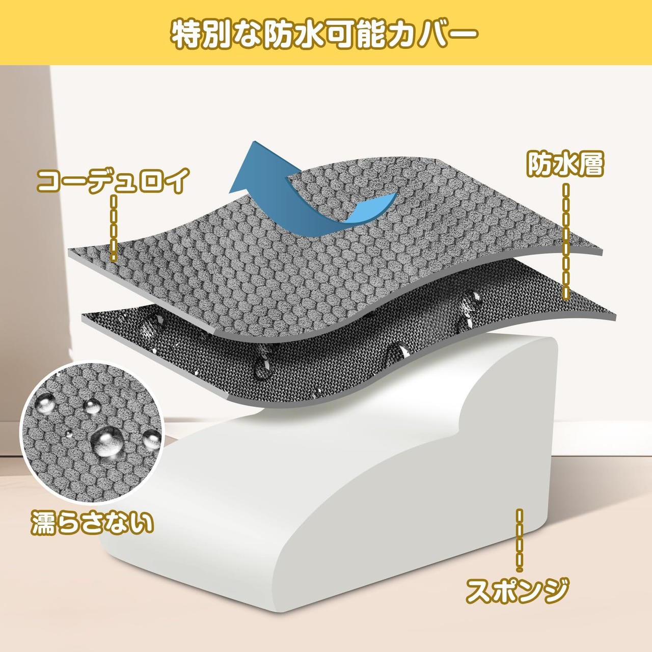防水&滑り止め:犬階段の底面にはシリコンのドットプリントが施されており、滑り止めの役割を果たしてくれます。コーデュロイ生地のカバー表面は手触りが柔らかく、裏地は防水加工されているので、スポンジが汚れやすいという心配はありません。