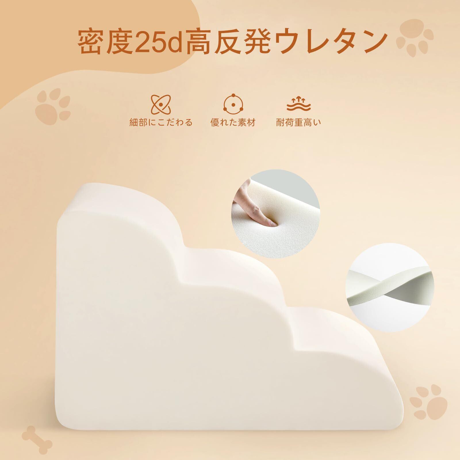 小型犬や高齢の犬のために設計されており、安全な上り下りをサポートします。犬の関節や筋肉の負担を軽減し、怪我や転倒を防止するために滑り止めの底が設計されています。