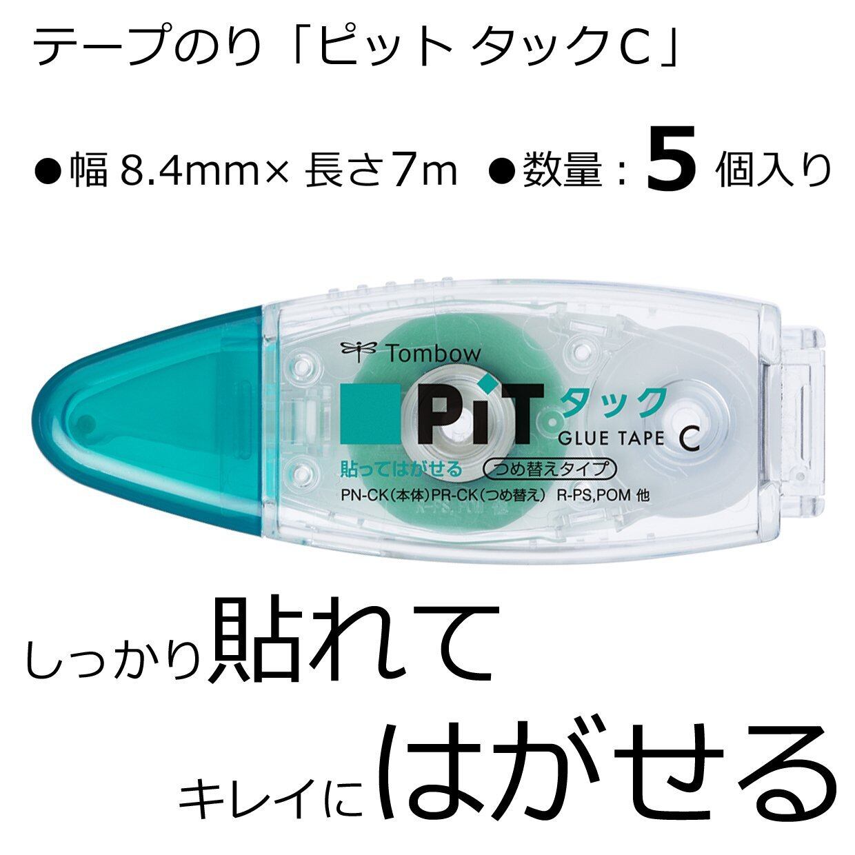トンボ鉛筆 テープのり 貼ってはがせる PiT タックC 本体 5個 (つめ替えタイプ) コンパクト 8.4mm×7m PN-CK-5P