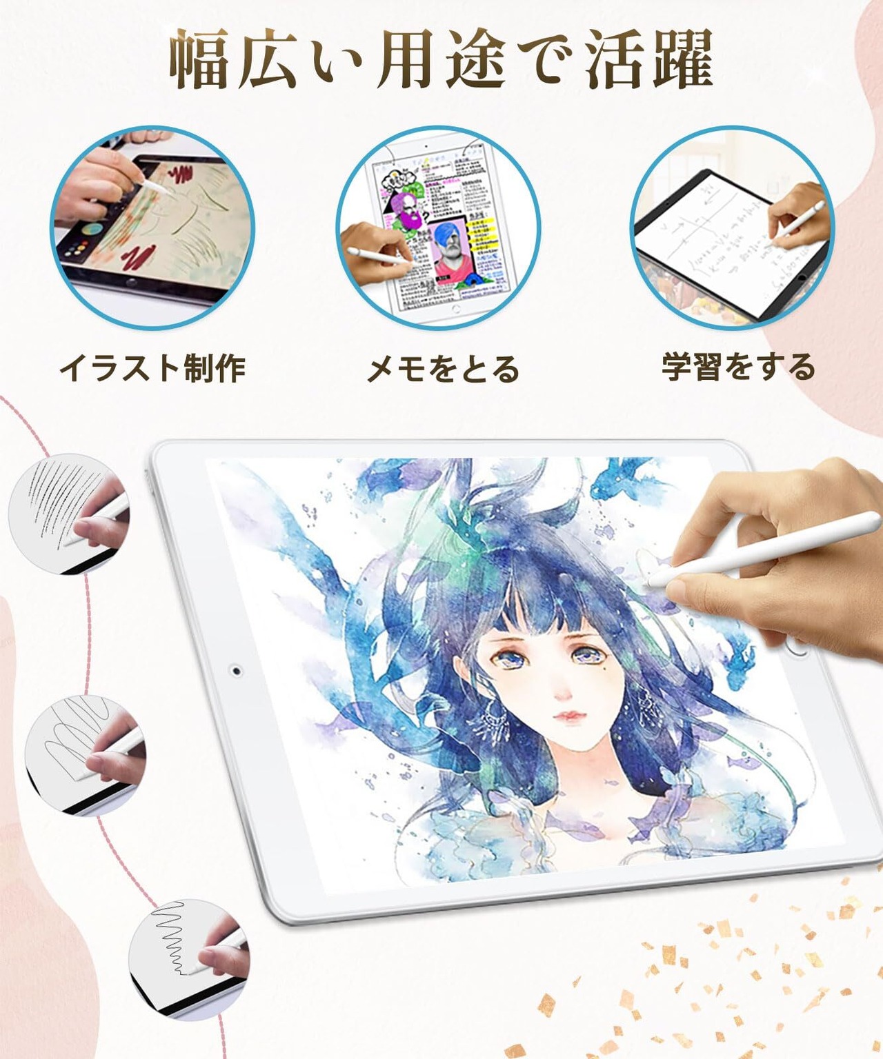 【紙のような描き心地】特殊表面加工により上質紙に鉛筆で描いたような描き心地を実現。 iPadで手書き作業をする人(ノート作成やイラスト)におすすめのペーパーライクフィルムです。️安い商品より圧倒的に書きやすい! さらさらした手触りで、書き味にこだわりたい方に最適です。また、表面を保護し、傷や汚れも防ぐ液晶保護フィルム(画面保護シート)です。