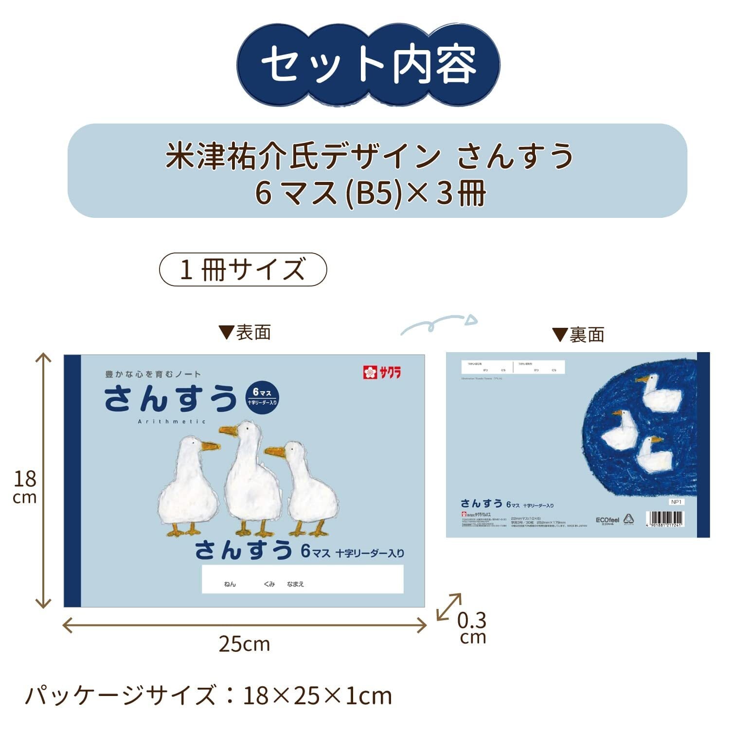 サクラクレパス 学習帳 算数 6マス 十字リーダー入り B5 米津祐介 デザイン アヒル 3冊 NP1(3)